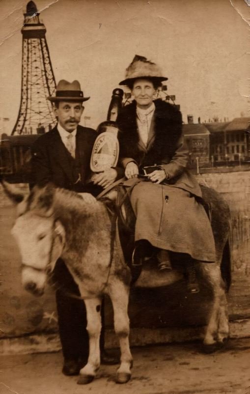 True enough, Herb. Only thing needed is to name the subjects in the photo. Heinrich had no trouble identifying Purvis Bostitch, twice mayor of Silver Plume, and Salome Chardonnay, the original Happy Sally whose seductive dancing inspired the tipple so popular in the Tri-Burgs. Cuthbert loaned his burro Methusela to Miss Chardonnay to get around on after she broke her right foot.