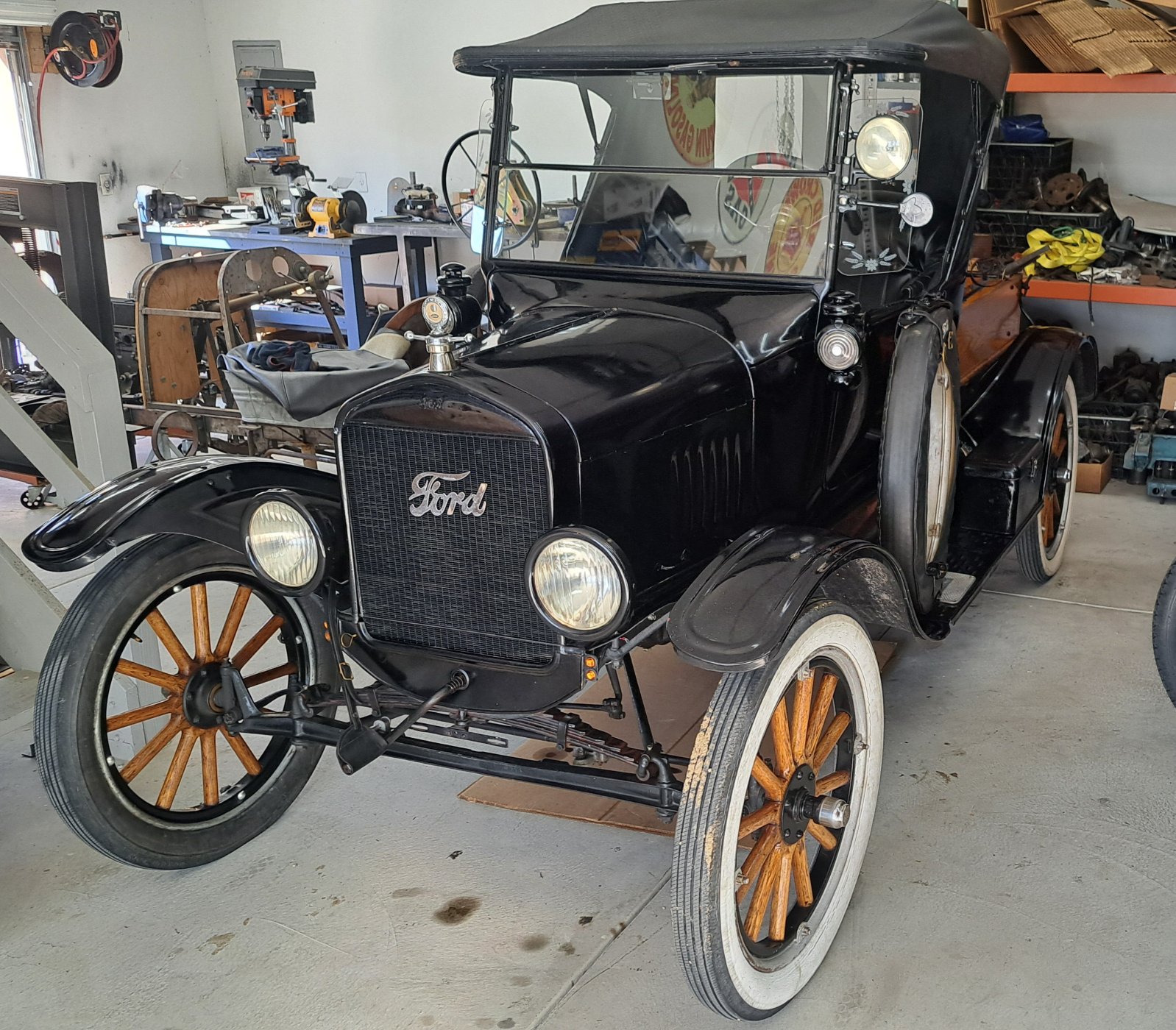 Very nice 1923 Roadster PU. Older restoration with new top and upholstery. New battery, tubes, rebuilt carburetor, hoses, spark plugs, wires. New band linings. Texas T distributor and coil. Brassworks flat tube radiator. Etched wind wings. Unique spare tire carrier. Steering stabilizer. Accessory spot light. :ugeek: Tool box and tools. 6 volt system with added 12 volt system for turn signals and running lights. Starts and drives well. California title included. Price WAS $12,500 NOW $10,000. Mark Chaffin (951)805-0928