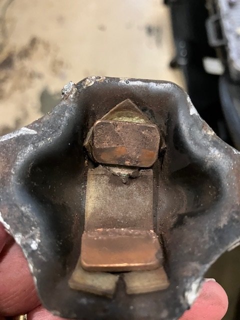 The stud base was turned when I first opened it and the insulator is torn so that is probably why it is shorting out. I am told on good authority that it is an 'oddball' early switch 1919 or before. Lang's does not sell that insulator that you see is torn. I am going to try the round non-grounding washers that Lang's kit sells and hope it works.