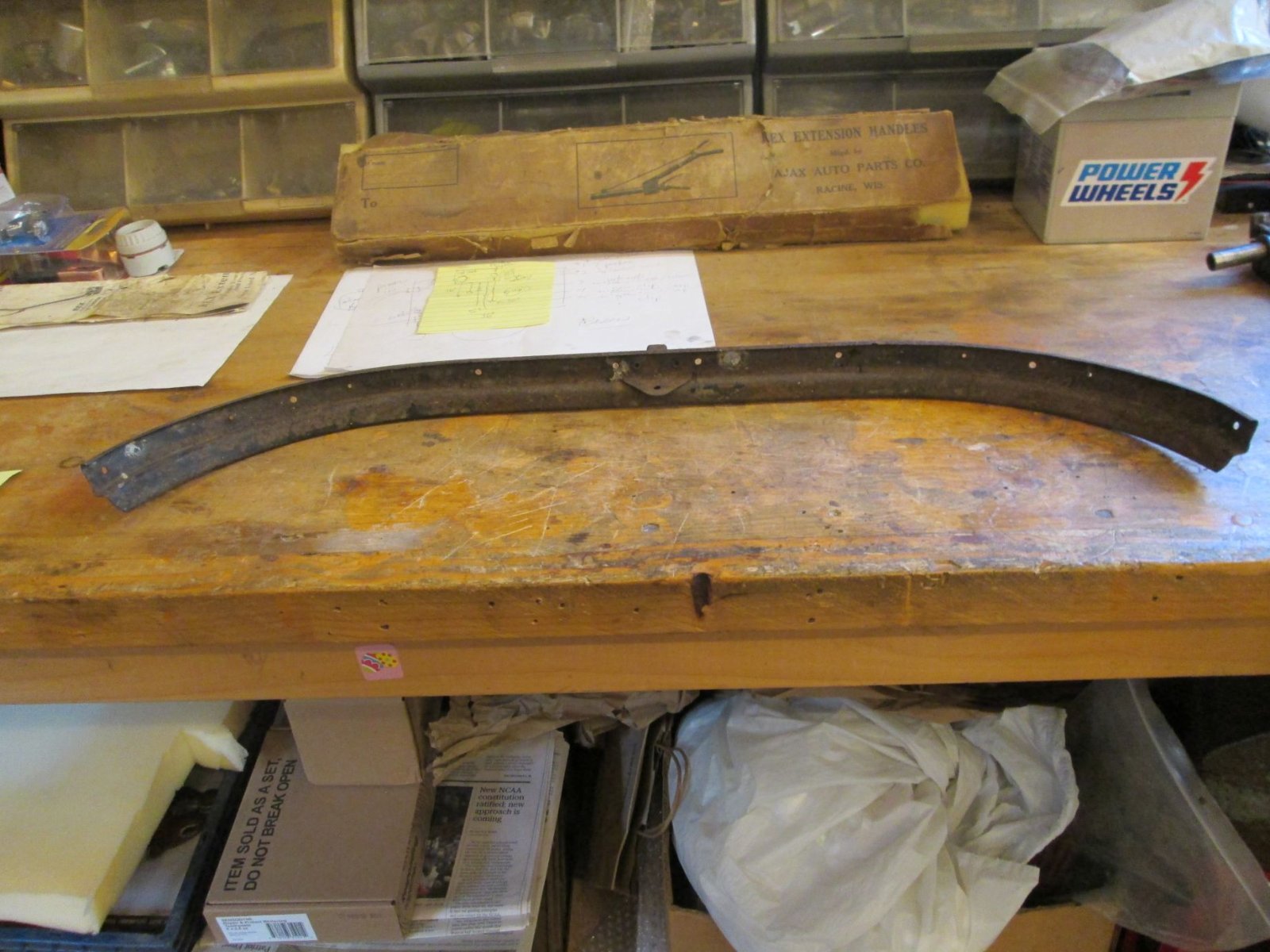 This piece was missing on my '21 Runabout. Most of them are, because they were made of a thin, cheap piece of tin and they simply rusted away. Good news is, however, they are made of a thin, cheap piece of tin! For my car, we used tin strip of the proper width, and just turned over the edges. The edges are fairly narrow, which also makes it easy to form. You could do it over a seperate form or possibly just form it in place, on the firewall.