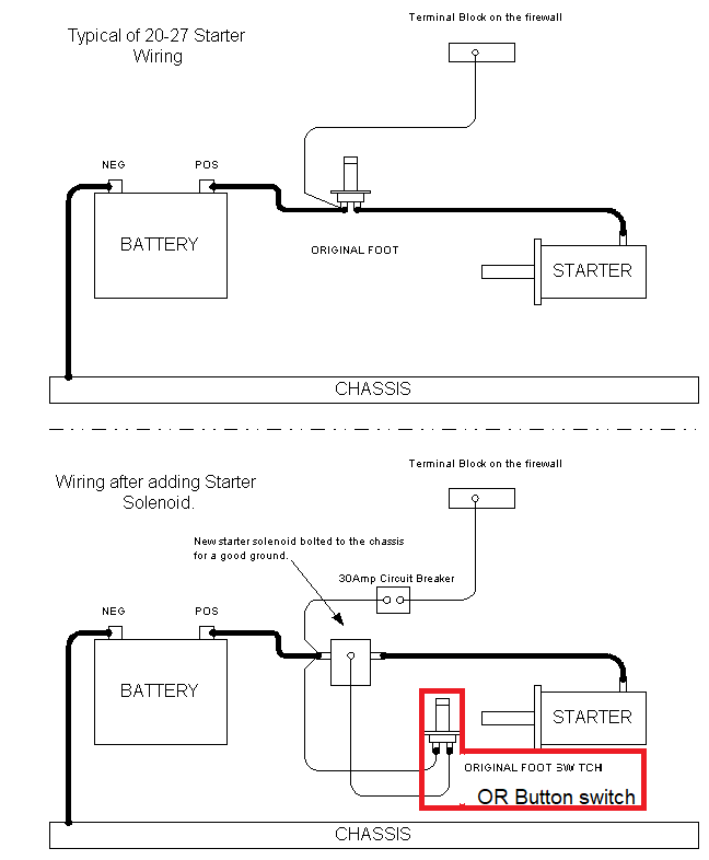 The solenoid acts exactly the same as the original starter button. The only difference is, instead of pushing the starter switch with your foot, you actuate it electrically, (that's the solenoid part).