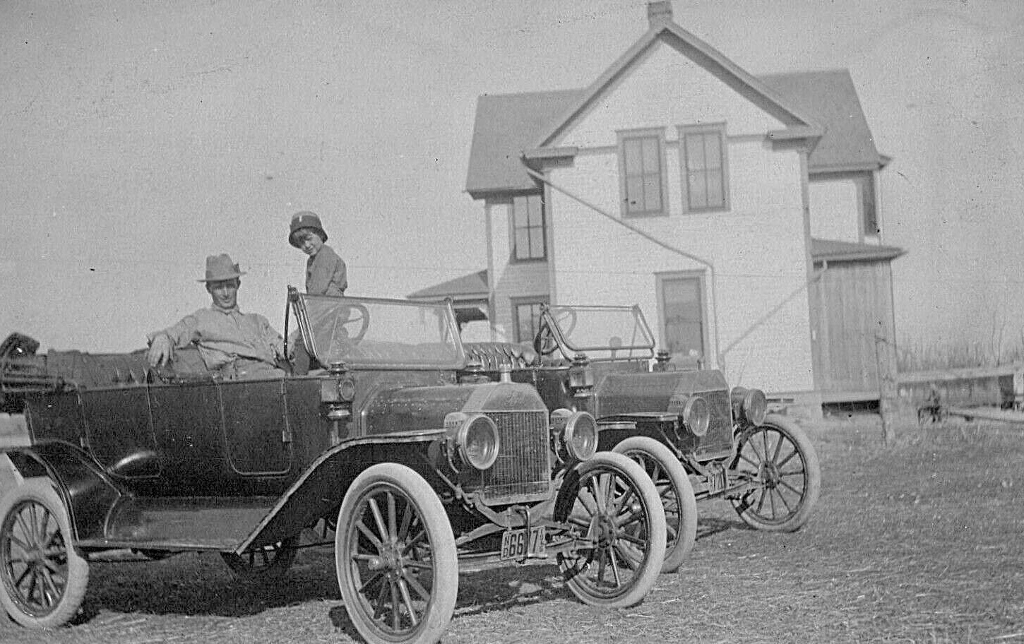 The first pboto has a 1913 IL license plate. The front plate for that year were designed to be mounted to the radiator and still allow for airflow.
