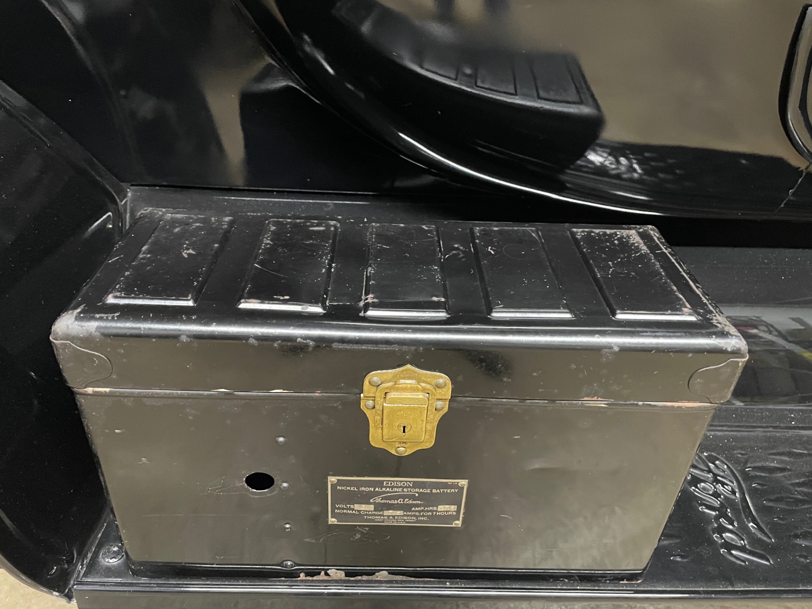 I have a hard to find, Edison battery box. I have seen a few of these mounted on runningboards, and in trunks. This one is in great condition. Two compartments inside, large area for battery cells, and a smaller compartment where you could put tools and the like. Will fit smaller modern batteries just fine.
