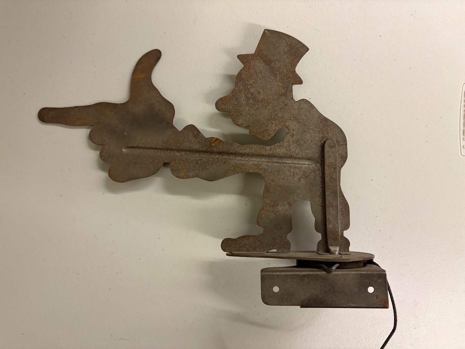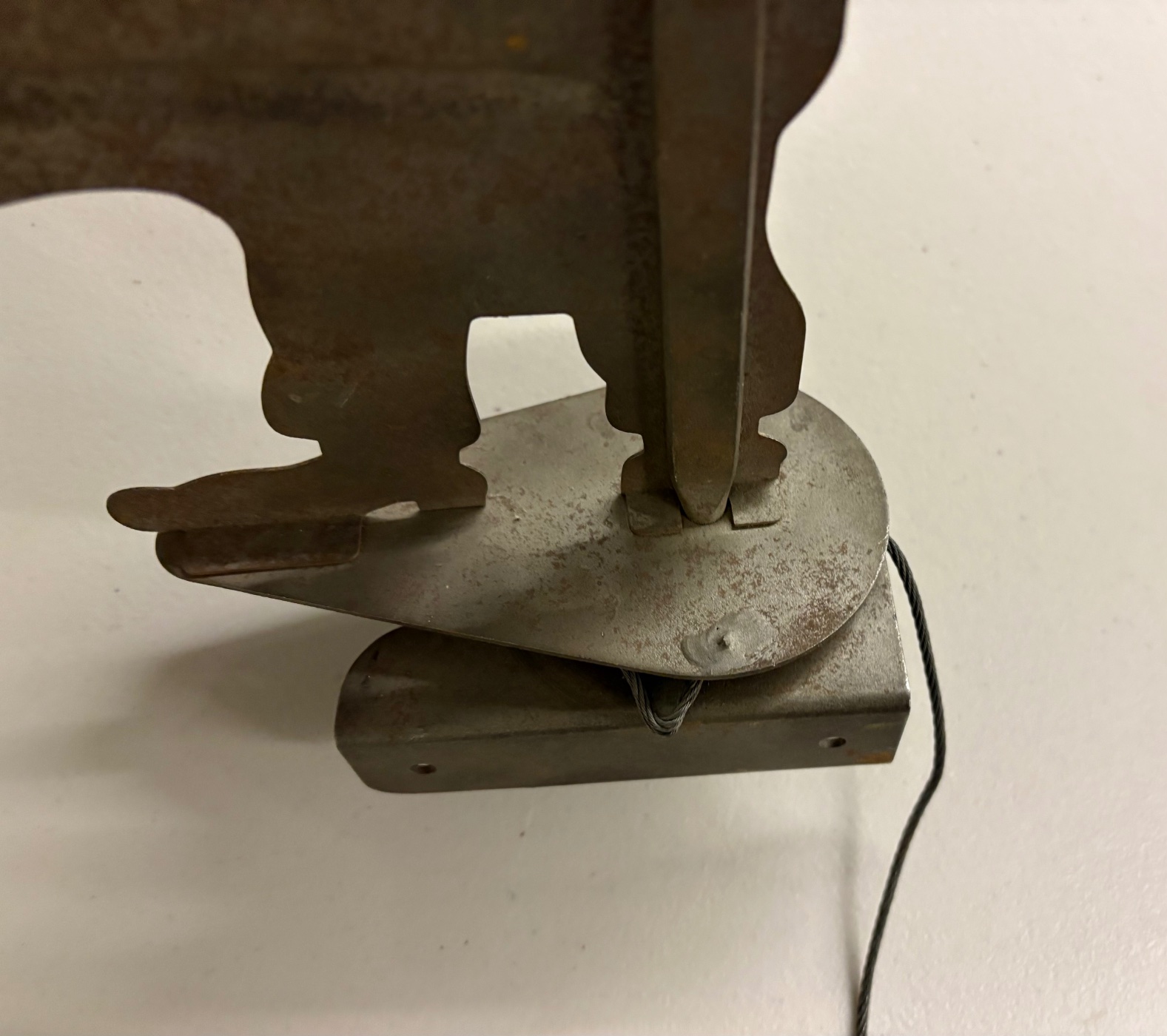 Hi all- I’m looking for information on this turn signal. It’s cable operated and seems like it would mount on the right rear fender. When the cable is pulled, it swings from facing forward to pointing right. It’s about 10” tall. Is it original or reproduction? Who made it? Thanks!