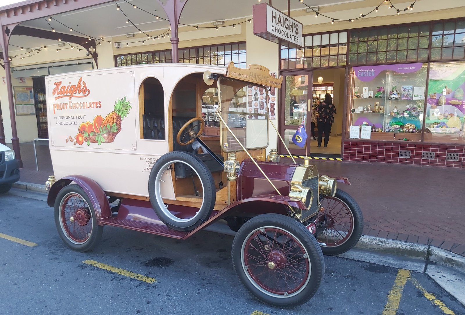 When I built my 1912 van, I approached a local family owned company for permission to use theor livery. They were only too pleased to oblige. The result was a hand enameled design taken from old packaging, for which they paid. I have been doing promotions/parades ever since.