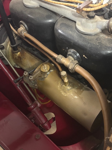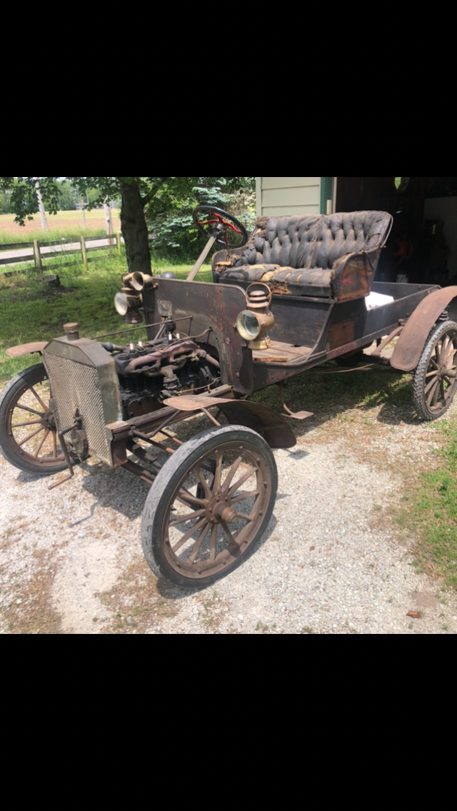 Hmmmmm, early radiator and script. Later tapered exhaust manifold. Does it have the covered cam bushing or McCord oiler exposed camshaft to the front? Nipple for exhaust oiler on the manifold? Are the rear axle support rods bent or straight where they mount to the axle tubes?
