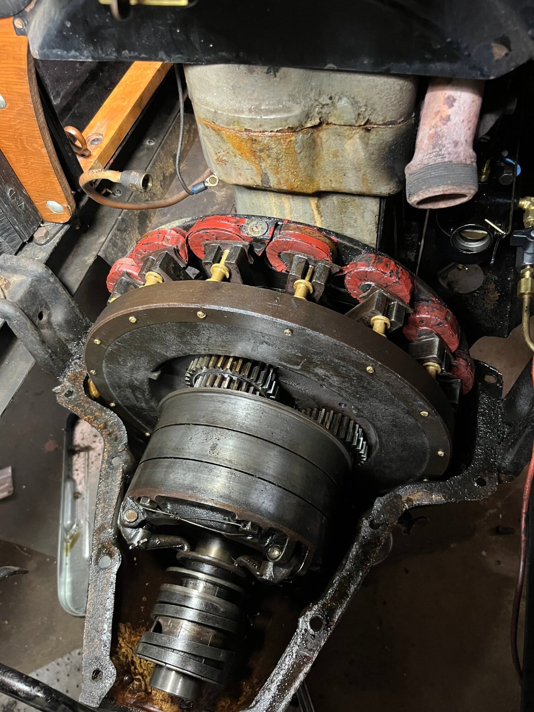 To check the trans correctly it needs to be dismantled. Drums crack in the webbing all the bush clearances etc, the magneto field coil needs replacing, the usual way is to use a later set up with a ring gear flywheel so a starter hogs head could be fitted now or later. your head gasket is leaking. I'd say it has been many years ago that the engine has been apart, the hogs was put on with cork gaskets, they haven't been available for years. Could be all sorts of surprises in the engine. The engine mount wood blocks are missing as well.