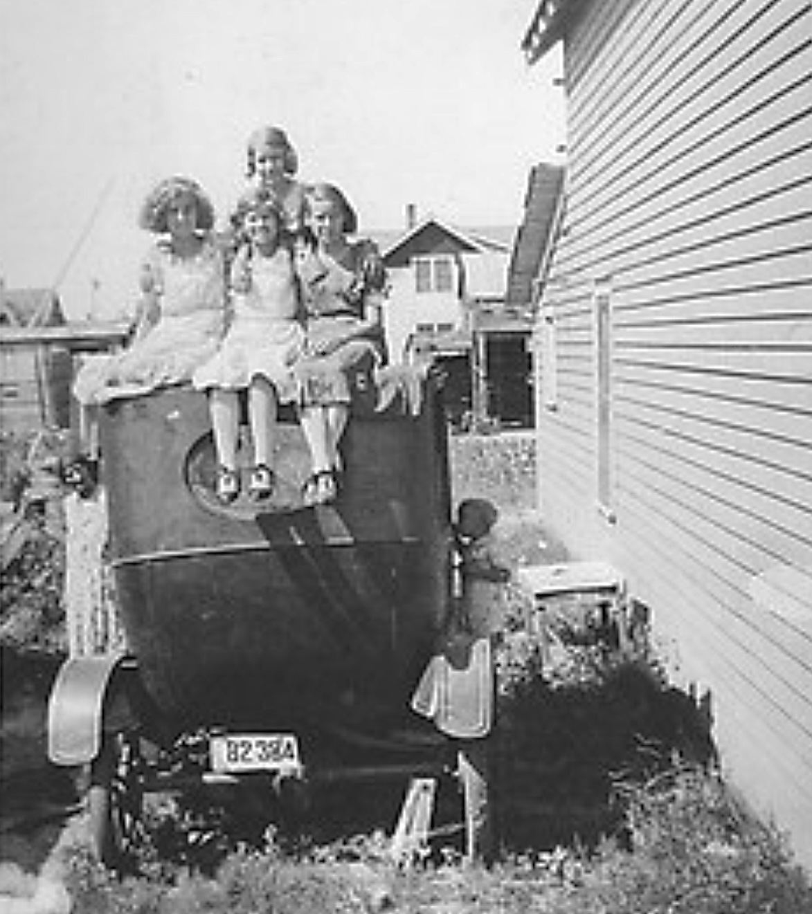 Picture #6 with the family could be my wife's grandpa, grandma, aunt, and uncle or dad in the T on the prairie North of Newell, SD. Down to the plug in the side where the top bracket would fit. However, it looks high hood and theirs was an April 23 car. :D