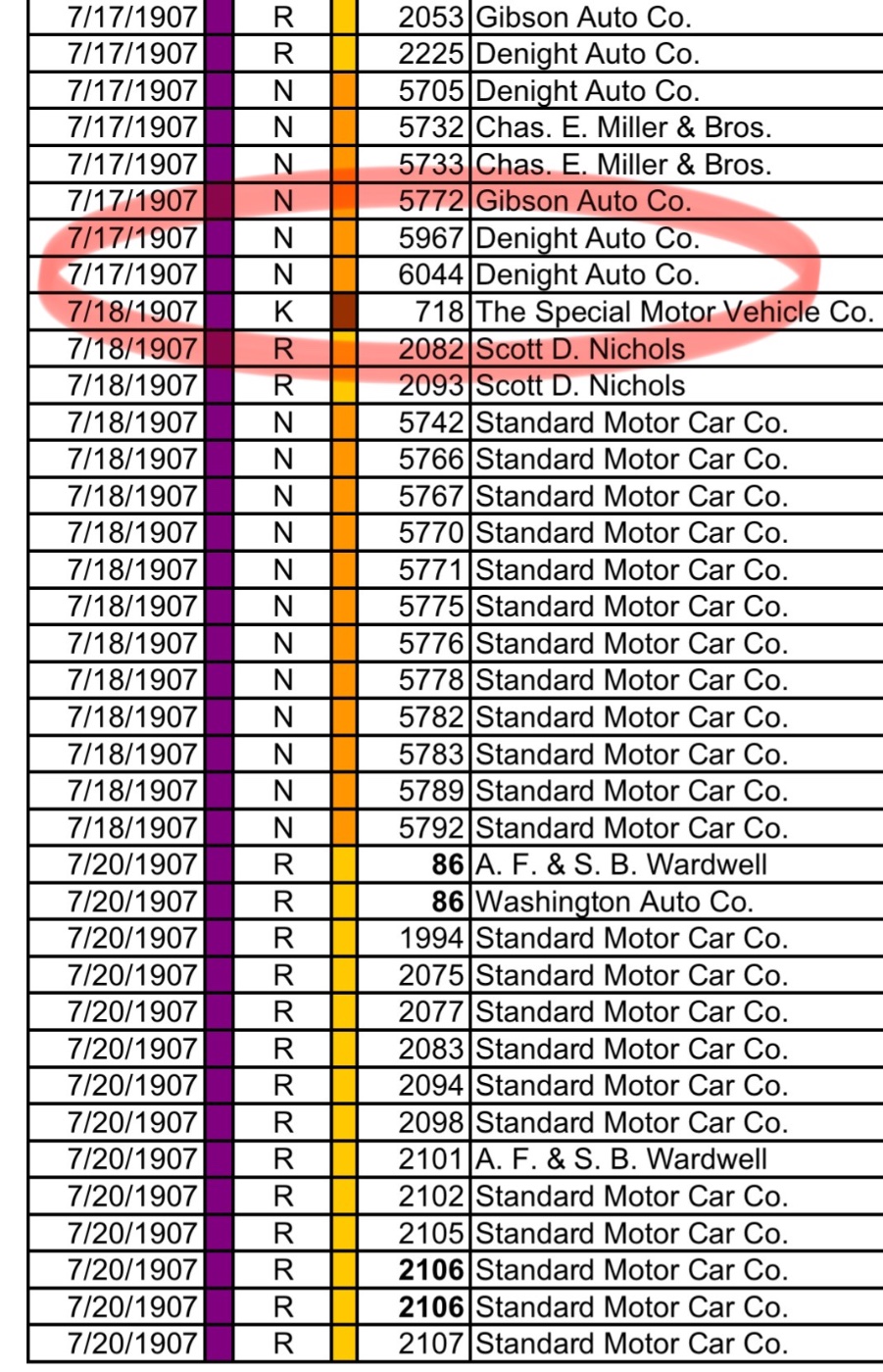 I’m using Trent’s database, included with Carl’s book. Unfortunately, no #6000. Looks like the closest N 60xx was sold/shipped 7/17/1907. Another close number was shipped 7/29/1907.