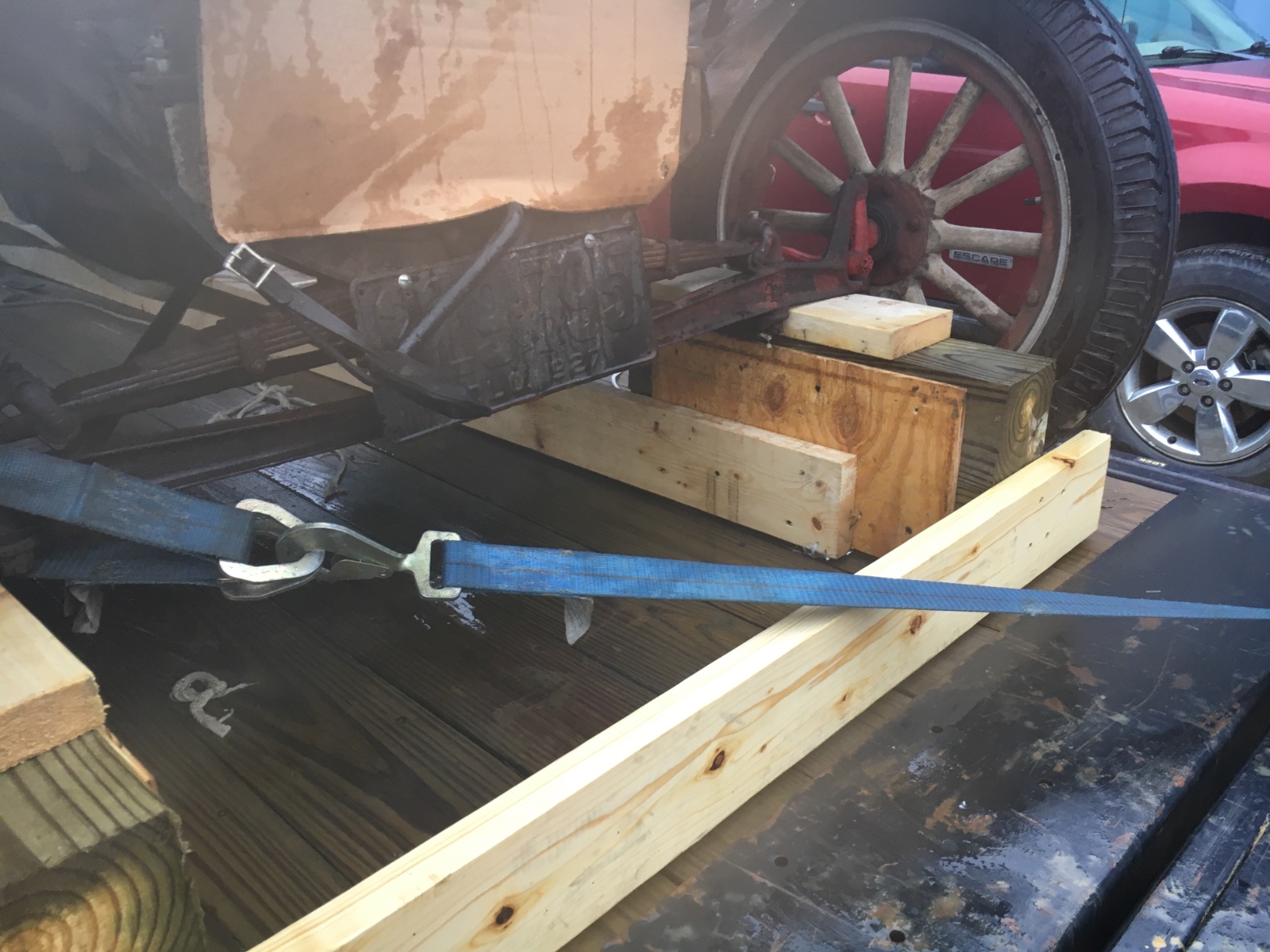 My grandpa gave me his 1926 tt truck almost 60 years ago but never had a place to store it so I could restore it until now. I need to haul it 400 miles. It has no tires or rims just sitting on the wooden spokes. Any suggestions?