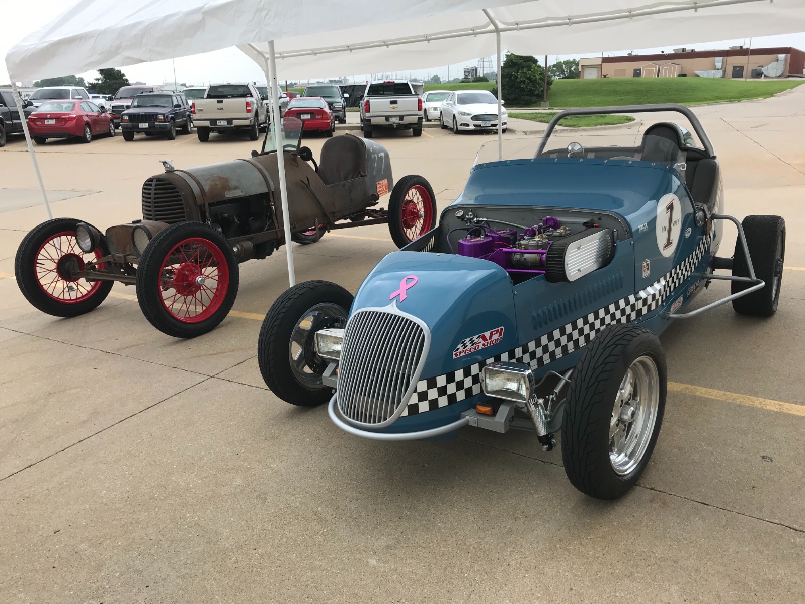 The blue car was king of the hill and the rusty one came in 2nd overall