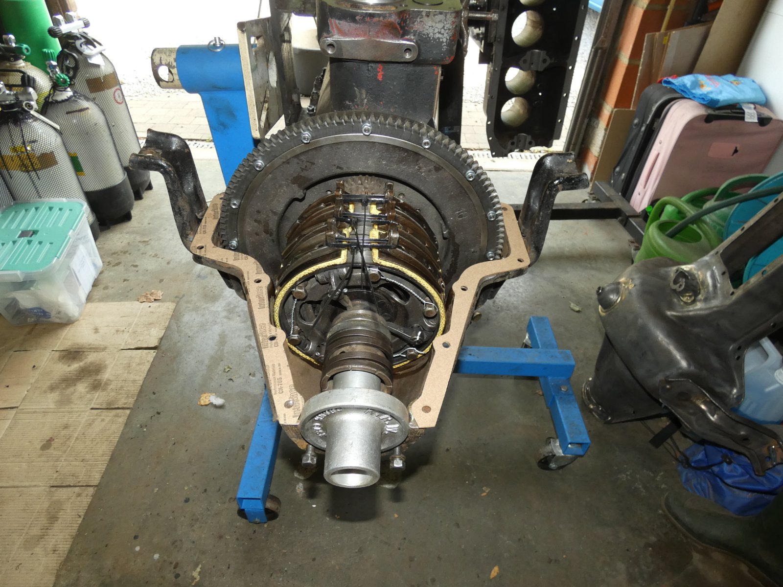 The original engine has a wide drum and a carterpan with the small inspection cover. I don't know how the previous rebuilder arrived mounting it on the engine. Here a few photos of the problem.