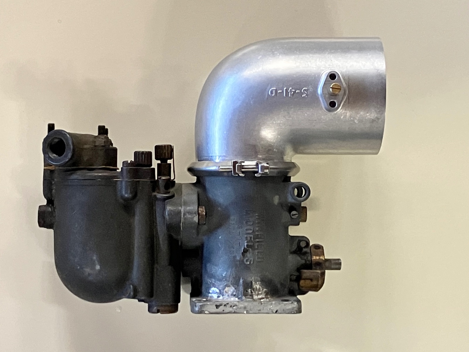 As seen in another thread, I installed a Model S-AA updraft on my touring car several weeks ago. This carb was mostly original, but had as many of my own components installed. Choke horn, choke linkage, V band clamp, carb adapter, throttle shaft, bushings, butterfly, float bowl cover, fuel inlet, and one of the new floats!