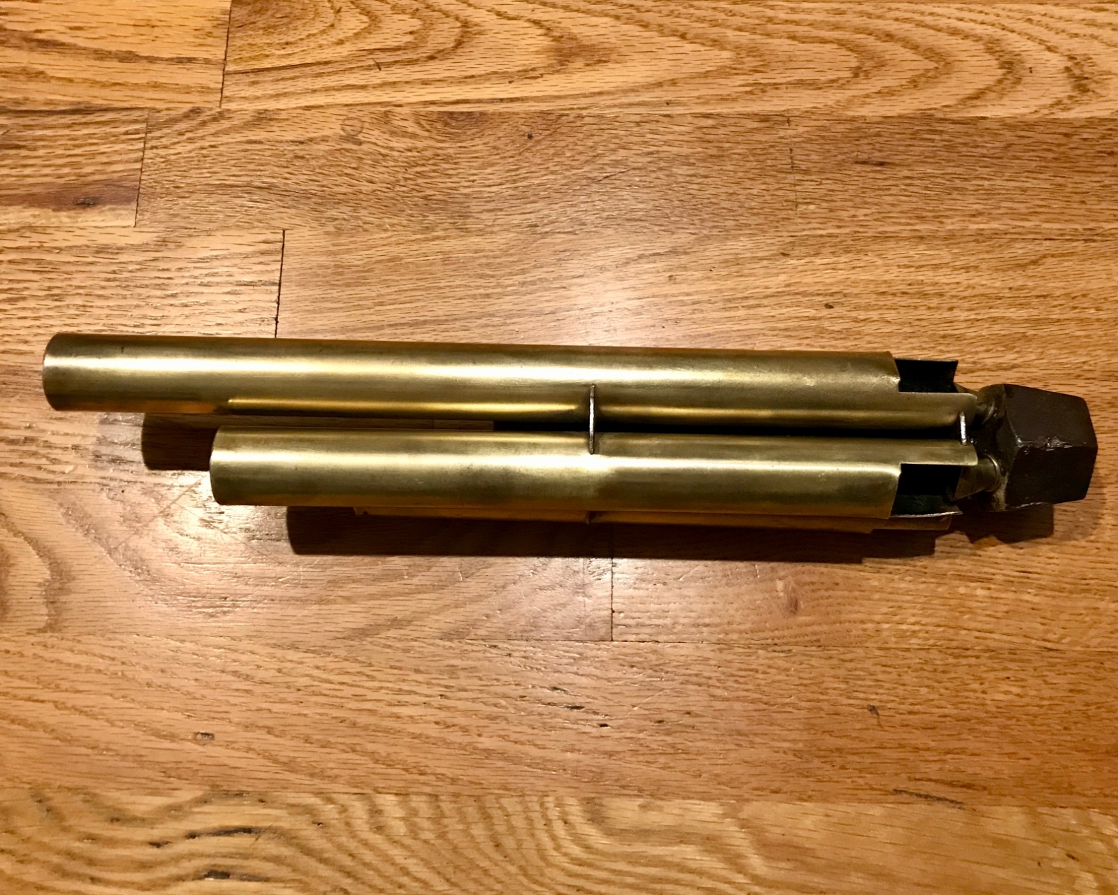 Original, not reproduction, brass Fulton Aermore No. 2 exhaust whistle. 15 inch length. Nice tight solid condition, has very crisp deep train whistle sound when blown. Great condition, no dents, one rub mark only. Works great, nice original whistle. 160 includes shipping.