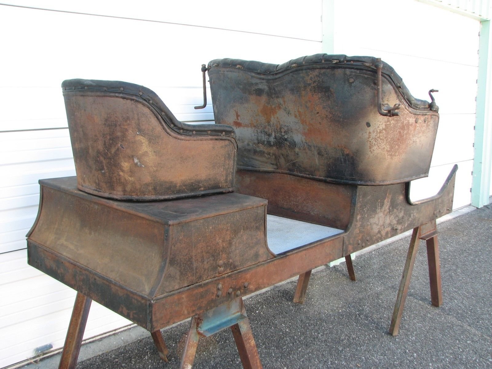 The striper is from Athens, Georgia. I haven't included his name because he is always swamped with work. He is a legend in the southeastern US. Maybe the entire universe, too! He does work for museums, high-end hot rods, antique cars, etc. I have 100% faith in him. I showed him some of Tom's pictures that I printed. Also, having that original mother-in-law seat with the original striping on it was extremely helpful. He's going to keep the stripe very thin, looking like what is on the mother-in-law seat. In fact, I left the seat with him.