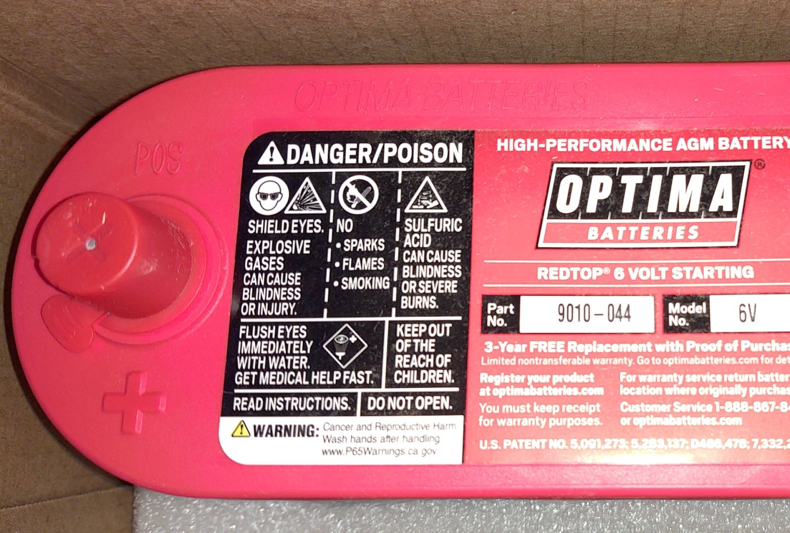 The picture of the red Optima 6 volt battery shows the positive cable connection to the positive terminal of the battery... What is the problem with having a insulated 1/0 or 2/0 size negative cable?.... It's the size of the cable that counts!