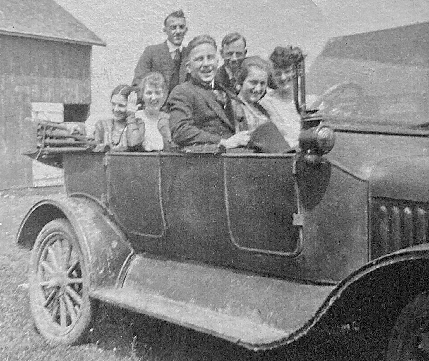 Picture number eight. Look closer! My first thought was a mid 1917, an early "black era" T touring car with the even folding windshield. I zoomed in for a closer look at the windshield and noticed the front fenders are the flat 1915/'16 style. It appears to have been updated using genuine later Ford radiator and hood.