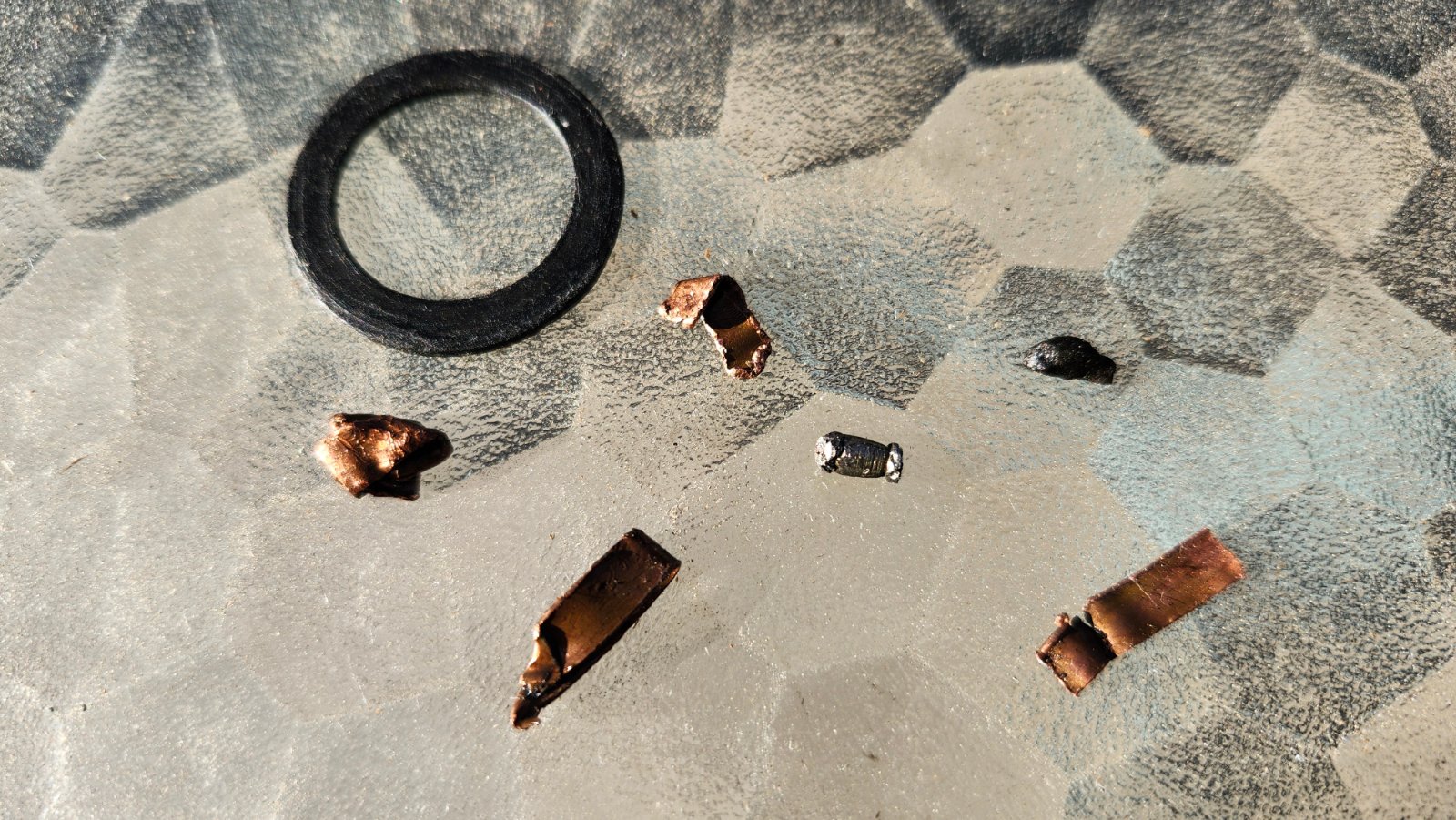 I found this as I was doing an oil change. The oil pan plug washer is there for scale. Any idea where these might have originated from? Most of them are copper, one small one looks like polished steel and one looks like a charred bit of... something. Should I be alarmed and not run the engine at all?