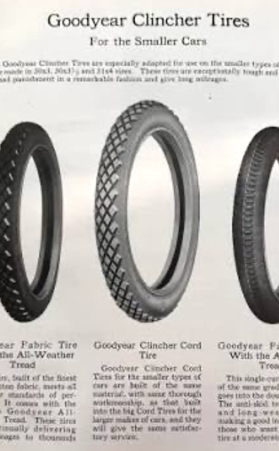 Seems to be Goodyear clincher cord tires from the 1920s.