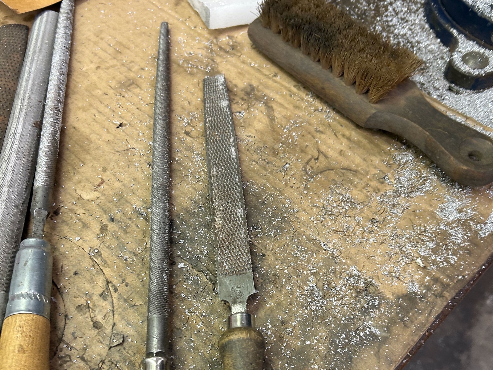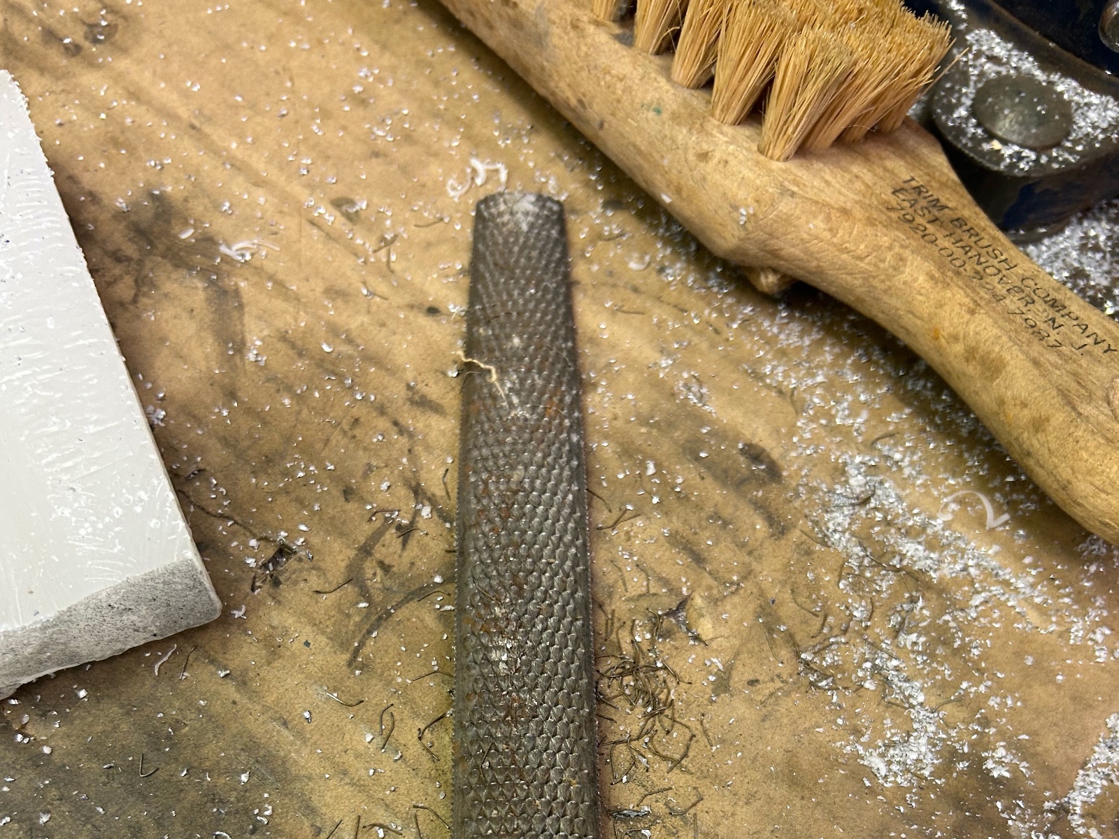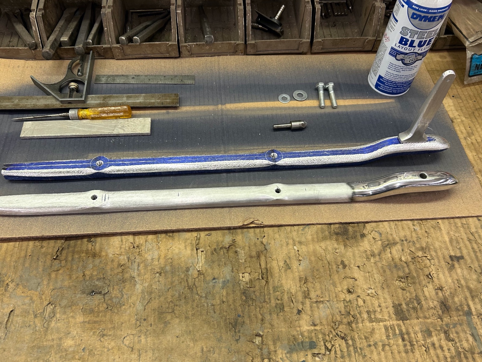 The key in a good job is quality material, T6061 billet, good files and rasp. When ever you are working any soft material use canners wax by means of rubbing your file. They never plug and clean up easy. Watch your pressure when cutting on the strokes. I use lay out dye for a good contrast.