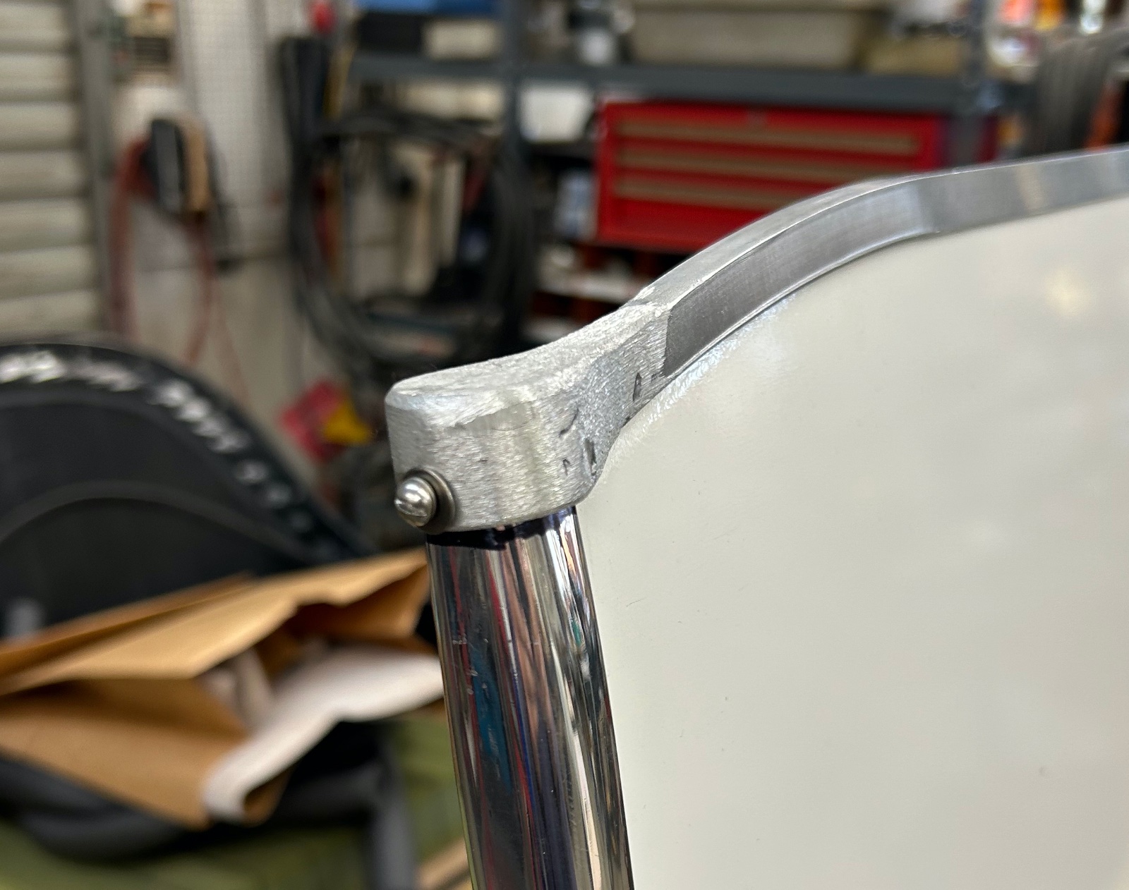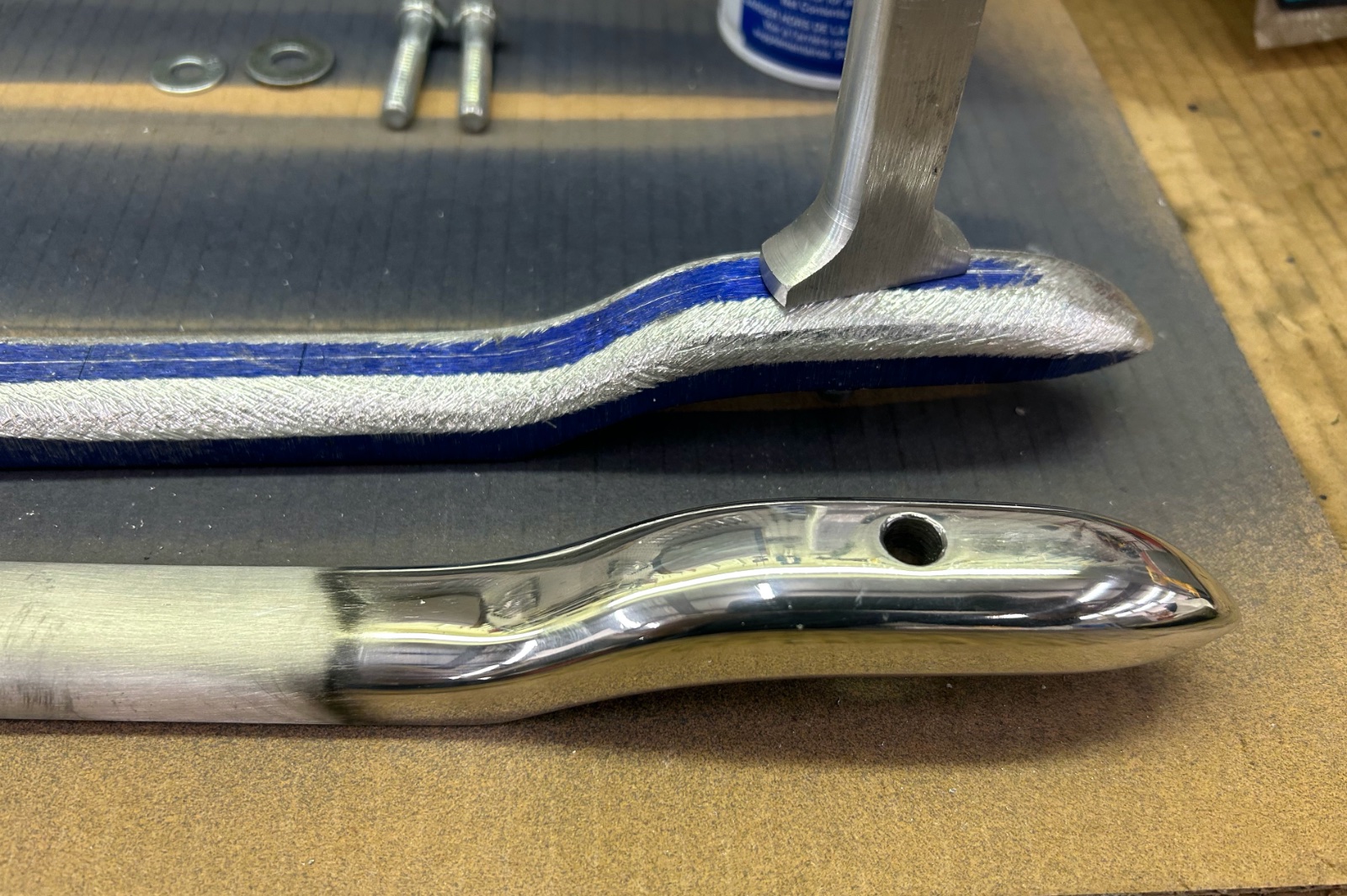 Well finally finished up the truing of the billet on a vertical belt sander using 40 grit. I drill completely thru the stanchions and then TIG up the holes for a full depth thread.., old school. Now making windshield/wind-wing templets and setting the style as we agree on the final design. Next will post pictures on how to carve the billet the easy way.