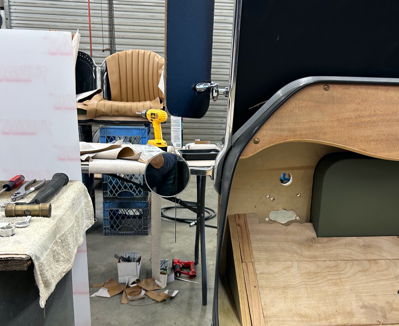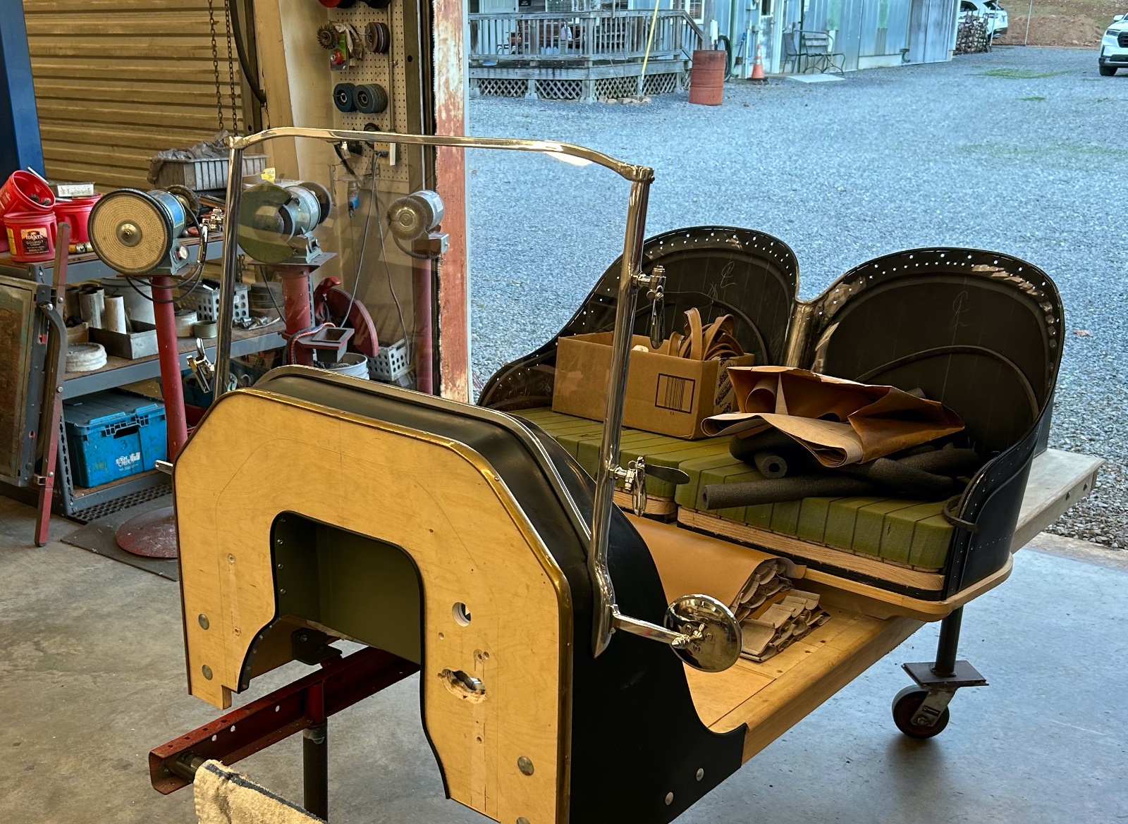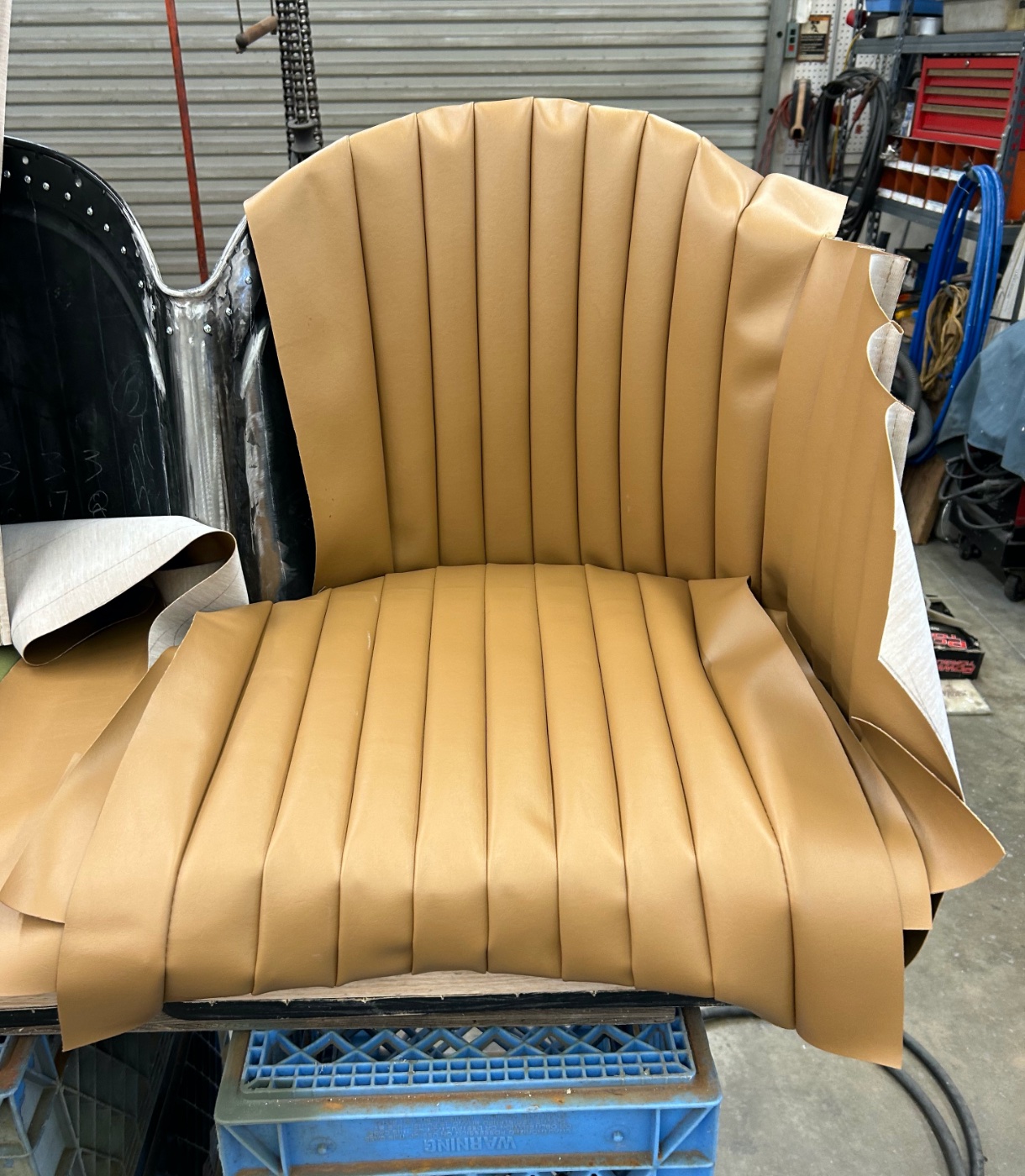 All what is left for the windshield is upper and lower channels with retainers/cut and polish the glass. Started the pull back pleated seat wrap for back and cushions.