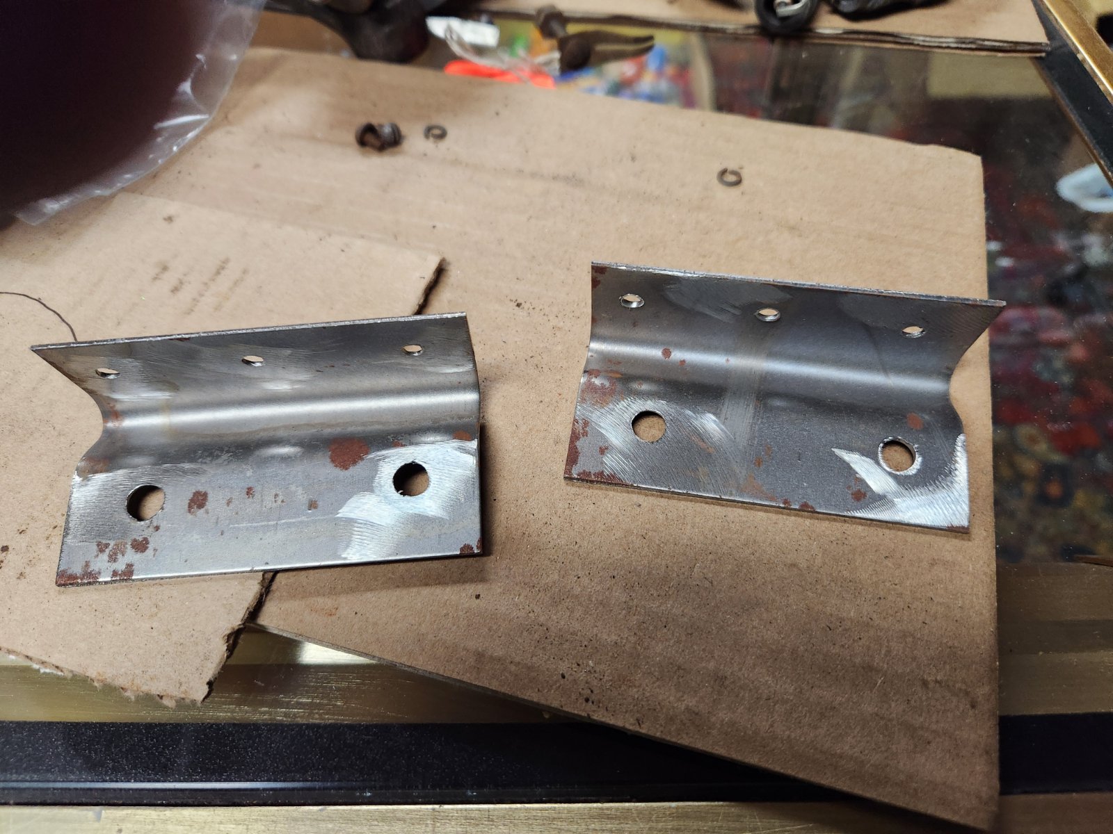 Bob's brackets look like new reproductions. The originals with which I am familiar are of somewhat heavier gauge, and they are a bit more complicated than they seem at first glance. Because they mount to a curved splash panel, the two hole side of the bracket needs to be curved to match that curvature. It's not a lot, but if you just drill and bolt up, it will pull a distortion into the splash panel, with varying results to the finished look. That two hole side of the bracket needs "adjusting" to get a correct fit.