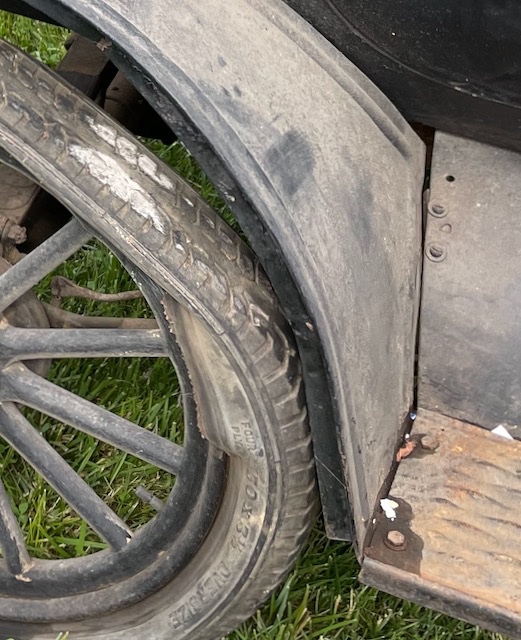 The front and rear fenders are original, the splash aprons and running boards are reproductions. The brackets on the rear fenders are pictured in the Ford Service Manual, figure #5 on page 1.