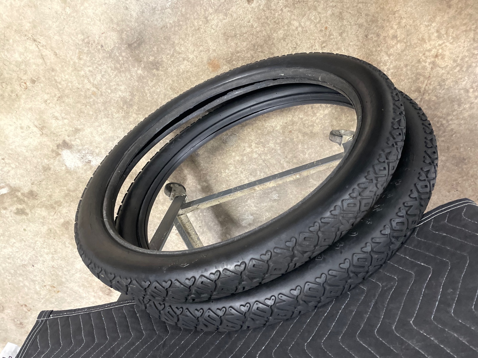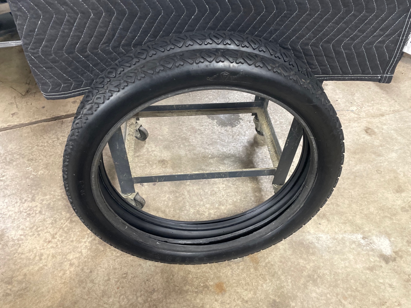 Pair of NOS Black Non-Skid Firestones. I do not know their age but they are reasonably supple and are very nice. Still have moulding nubs on them. $250 obo