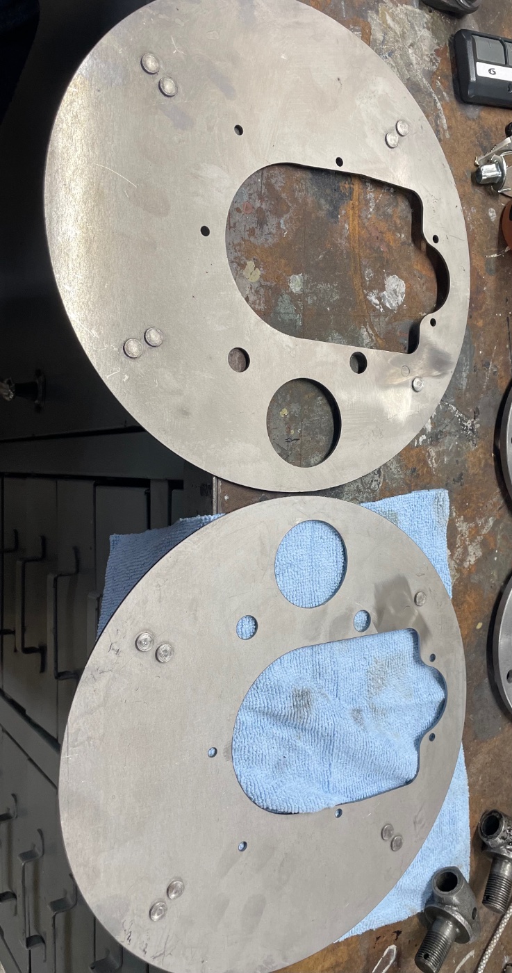3) REPRODUCTION: Pair of backing plates, high quality, lazer cut with riveted tabs. $75