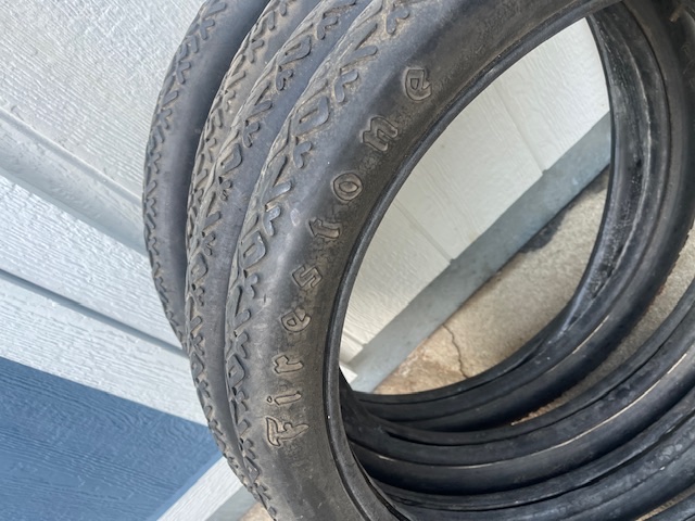 Set of 4 used Firestone non skid 28x3 tires. Still pretty flexible. $400 plus shipping. Kdmks AT att.net.
