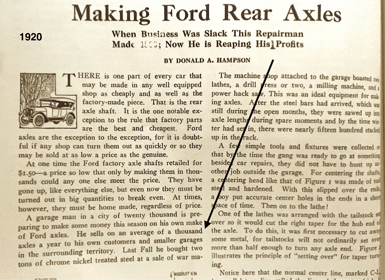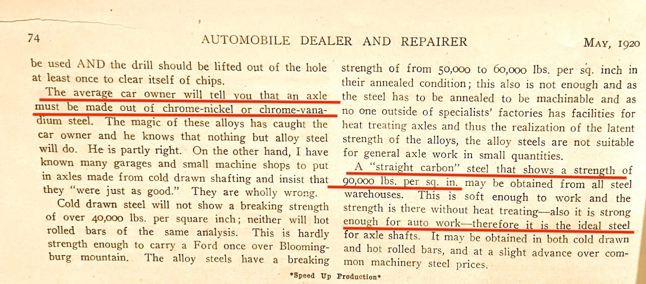 Interesting on breaking Ford axles back in the day. Had posted the below pic of axle dimensions some time ago, obtained it from this article from 1920 issue of Automobile Dealer and Repairer, May 1, 1920, "Special Ford Number" as this issue has lots of Ford info.