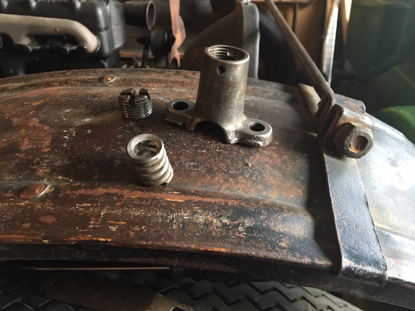 It was really crusty and seized up but I managed to free up all the bits after soaking it for a few weeks in penetrating oil. After that, it cleaned up nicely. It appears to be missing the little cup that goes between the spring and the radius rod ball.