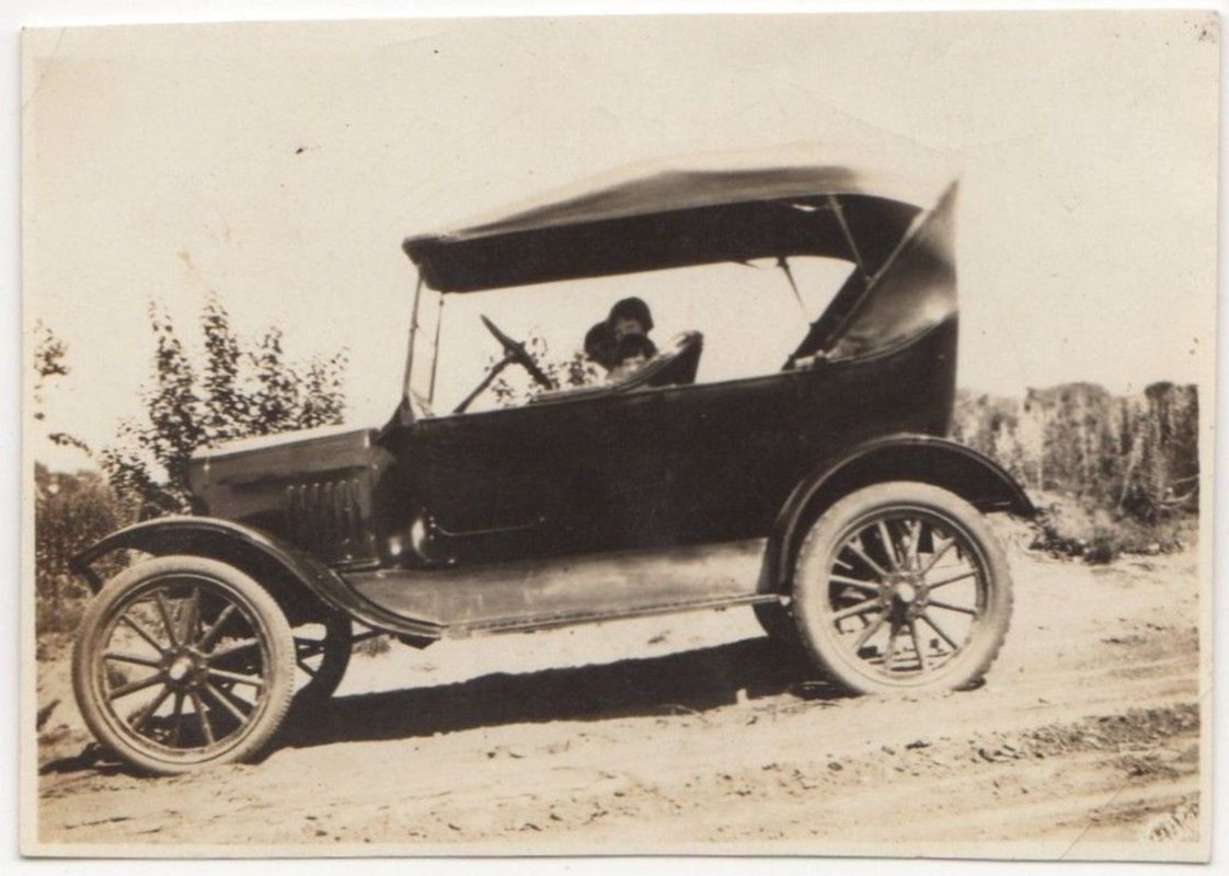 My family's first car was a 1917 Touring, similar to what I own today. This photo shows my grandparents in the back, father in the passenger's seat and uncle behind the wheel. The photo was taken about 25 miles from where I live today.