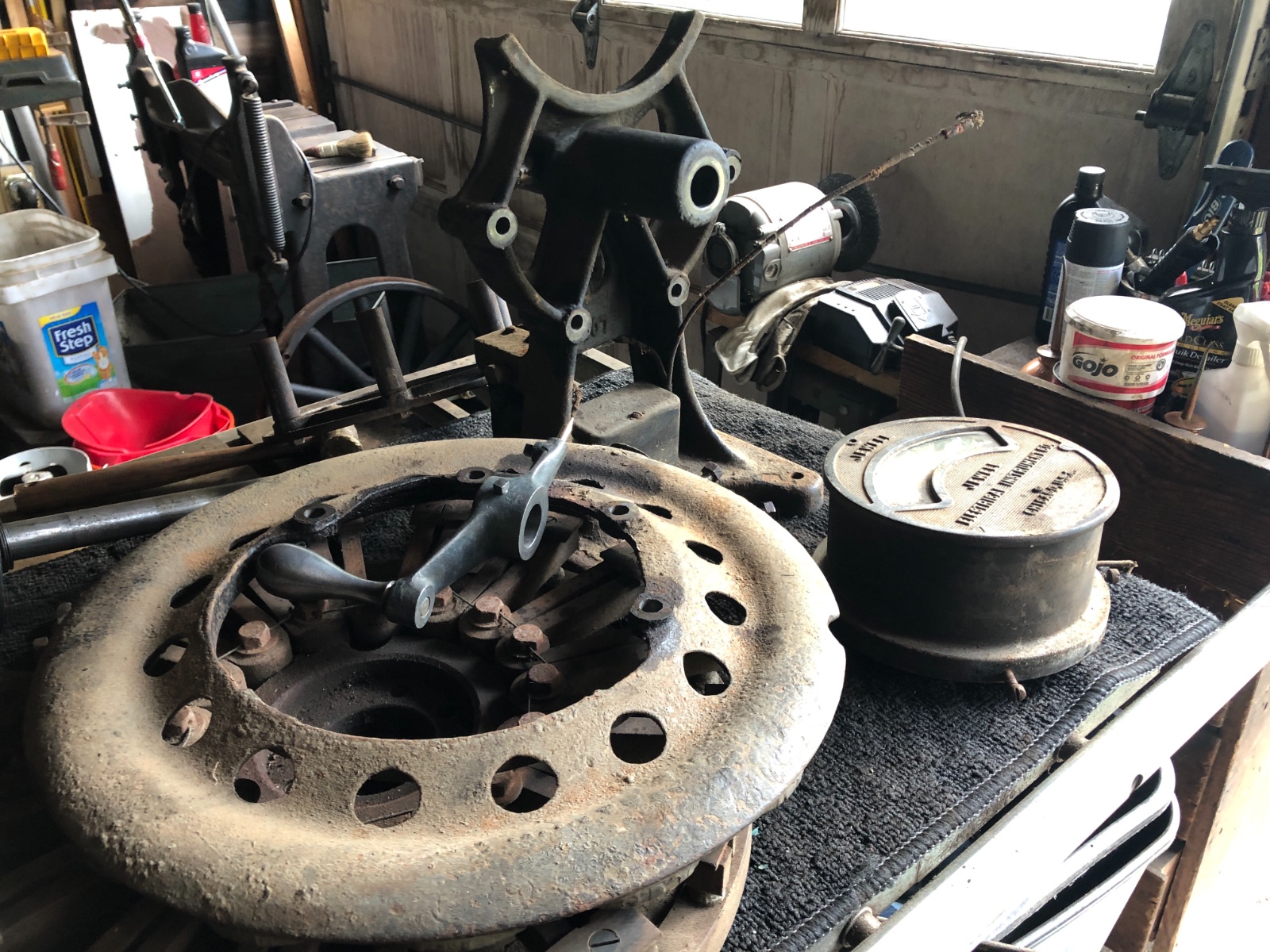 Also, seen in the pickup bed... I sent a front wheel to Noah Stutzman, and it came back beautiful!! Knocked out the old bearing races. Now.... Where did I put the new outer bearings and race? I have 2 sets of inners.... Hmmmmm.....