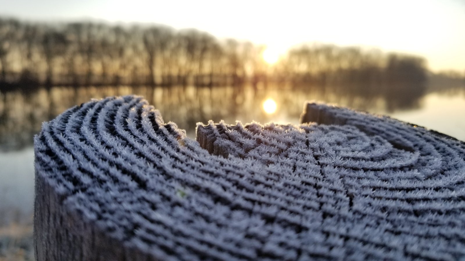 Not sure which I like better. I was using the post to steady for the sunrise shot when I saw the frost.