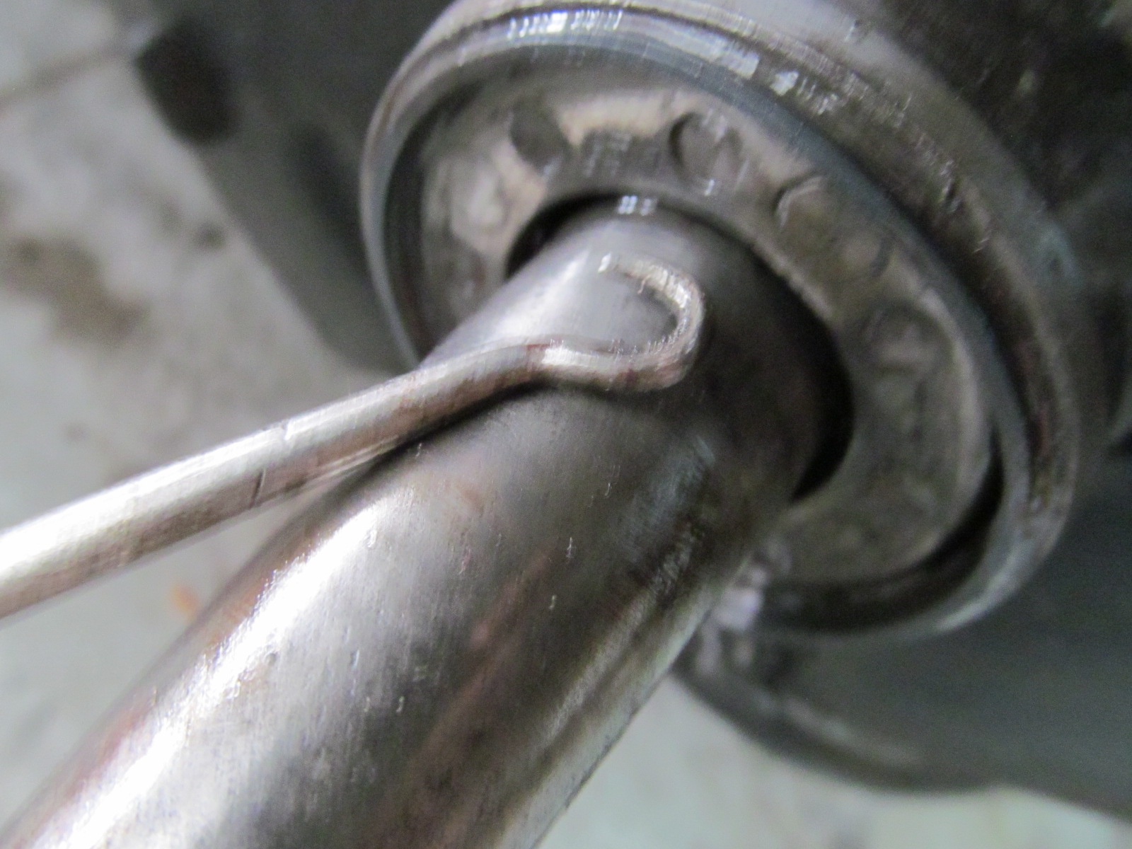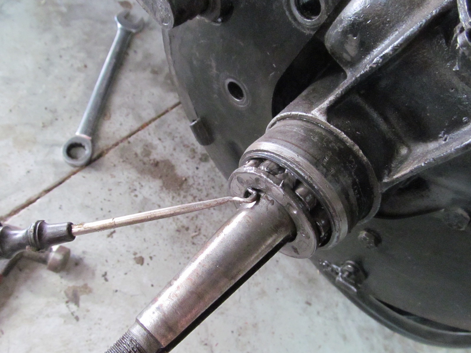while we're waiting for Steve's photo, I think you'll have luck if you will hook the bearing with a wire and rotate the other wheel, forcing this one to turn, too. I have never failed to have a tight bearing walk out while pulling on it and someone else rotates the axle for you.