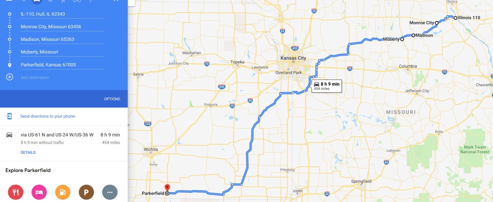 After Moberly it was Carrollton, Richmond, Excelsior Springs, Liberty, KCMO, Roeland Park, Olathe, Ottawa, Waverly, Burlington, Madison, Piedmont, Latham, Atlanta, Burden (almost), and home.
