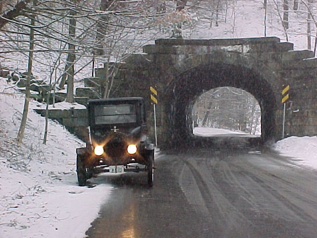 I am a confirmed cold weather sissy. A genetic defect causes cold air to turn my nose into a snot fountain, a most disagreeable inconvenience. Fortunately I live far enough south to get some decent Model T driving weather several times during the winter, and snow is rare enough and light enough that the roads are not constantly infested by salt. I enjoy visiting the northern states when they're thawed out, but wouldn't care to endure their winters.