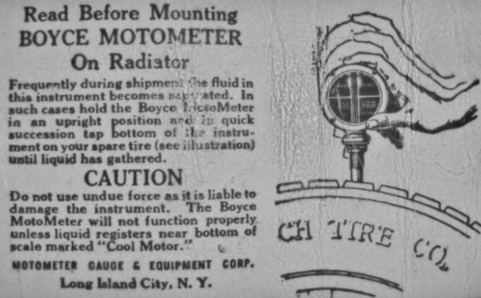 Before you tear into that Motometer, you may find it easy to bring the red fluid back to the base. Some use the 'tapping' method that Boyce put in print, for mine, a simple fixture and spun the meter for several minutes on a lathe. That pushed the fluid into the chamber. Holding it in boiling water proved the Motometer was back in form.