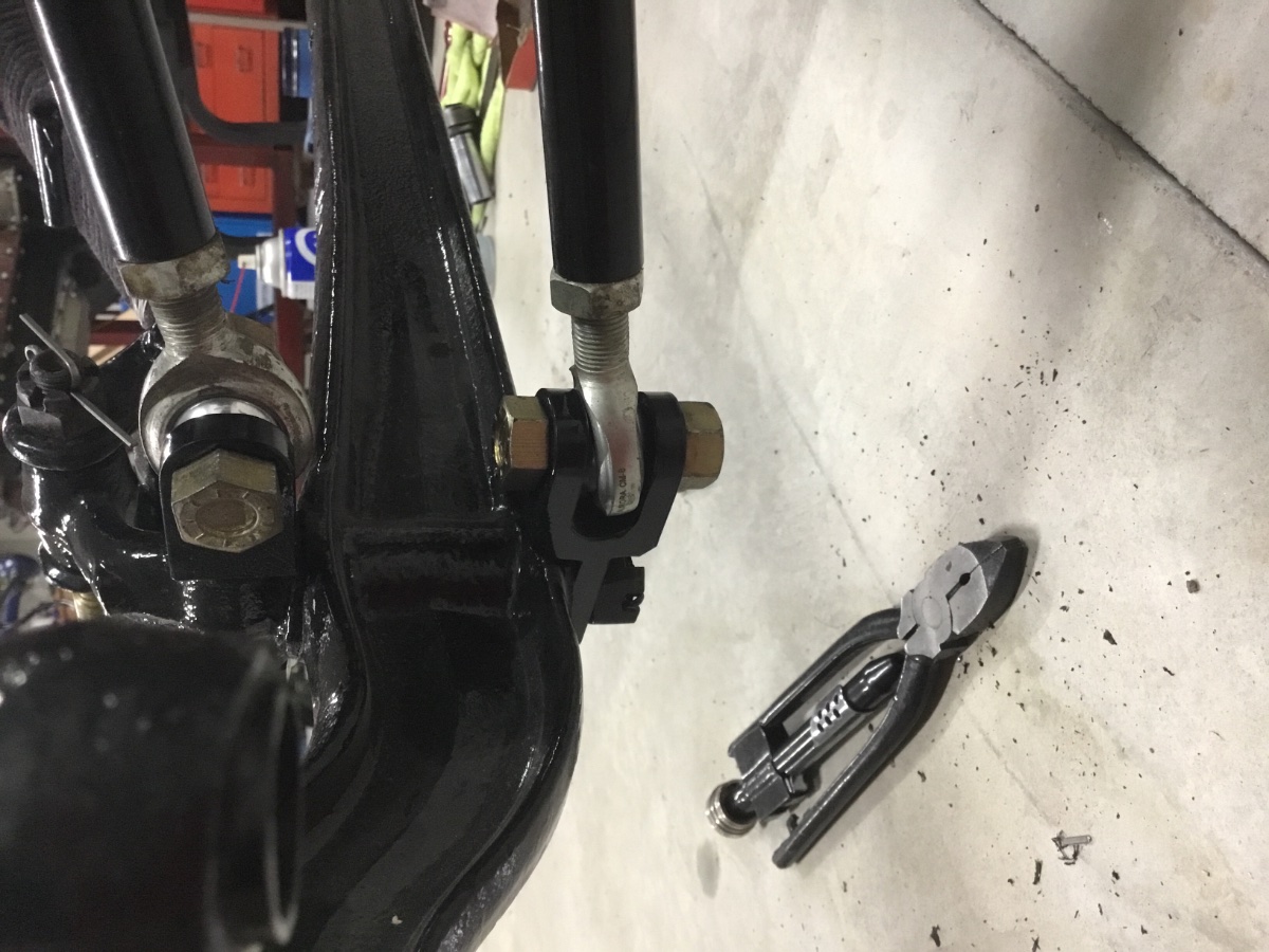 That's the second time in a month or two I have seen spindle arms with the speedo mount hole re-purposed for a different application. Previously they were used as one of the mountings for motorcycle disc brake calipers used on the front axle of Fronty powered T roadster. Very neatly done, and easily reversed. I really liked the brake set-up, as it was far less obvious that the rear axle set used today, even though it was on the front axle.