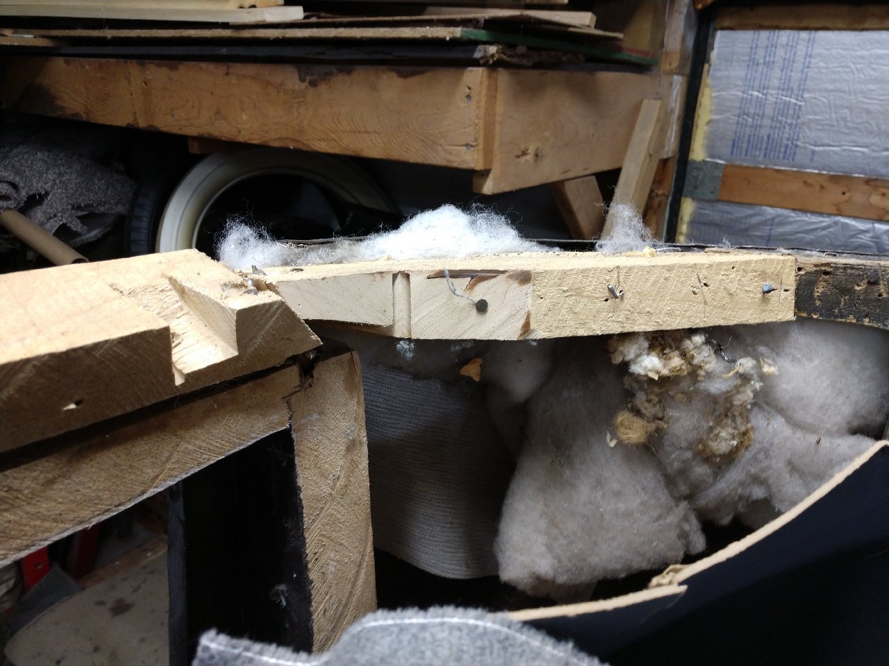 More pic's... This car was originally from the Upper Peninsula where you look up to see how deep the snow is. I was a bit surprised to find rolled roofing under the top pad. The weight of the roofing material took a toll on the top bows. Just part of the fun … Notice the prior stapled the chicken wire and screwed the headliner hangers. yeeee ok~ :o Once again this forum accepted these pictures and that was that. I will try to post more pictures as its mood allows....