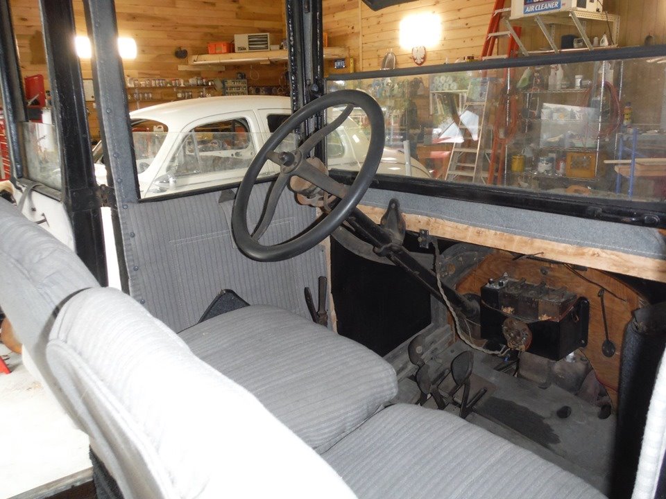 Comparing the cars was interesting for sure. And I think somewhat informative. The Canadian C-door had its original gasoline tank still under the rear seat! The rear seat riser/framework on their car and mine were basically identical, and not like any of the twenty or so later center-door sedans that I got to look at the rear seat risers in! So, our two cars, both believed to be originally early '16 T center-door sedans, had the seat riser designed for the gasoline tank. My car however showed no signs of ever actually having the under the rear seat tank installed. Their car had the front seats replaced by a previous owner to include the later driver's seat gasoline tank (the car did not have that originally!). My car had the gasoline tank under the driver's seat from new. My car also had unusual front passenger seat riser/posts. Their car had the common later style because both seats had been taken from a later car. I only ever saw one other teens era C-door with the passenger seat folding riser/posts like mine.