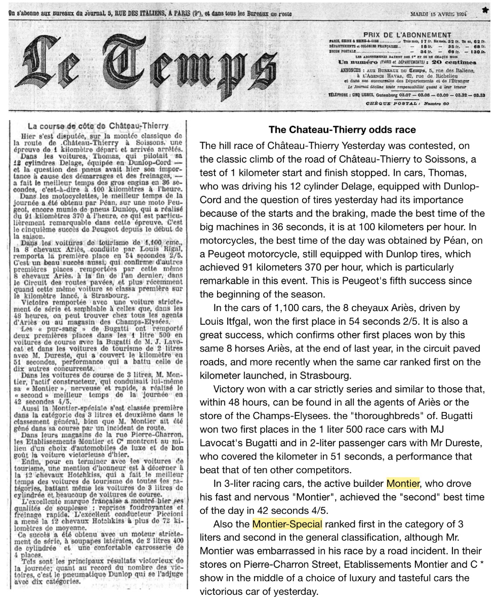 Winning the 3 liter division and 2nd best over hall in this 1924 French hill climb:
