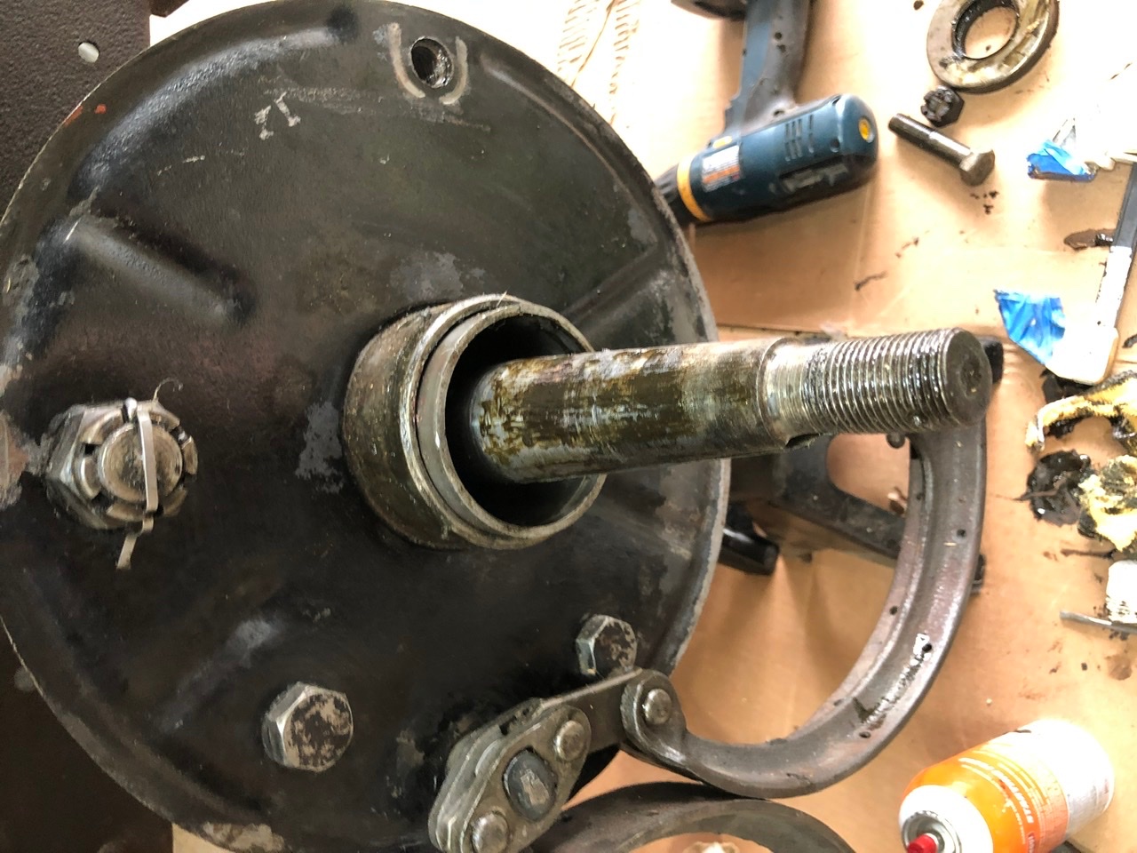 Thanks for the info! I don’t even know where to start looking to get the brake shoes lined. Great to know that it’s an option so I’ll start Asking/ calling around. I’m having a heck of a time pulling the right wheel even with the tool. Been beating on the pulling tool pretty hard to the point that i’m afraid it will break. Not sure if Langs has a tool warranty so I’d rather not be out 90 bucks. Been putting off buying a repair manual but it seems that I might need to because I don’t understand how to remove the sleeve/roller bearing since it’s riveted. So for now, all I can get to is the outer cap and felt pad. It has the cap with a groove but no washer behind the felt pad. Seems like a dumb question... how do you remove the roller bearing to get to the inner bearing seal?