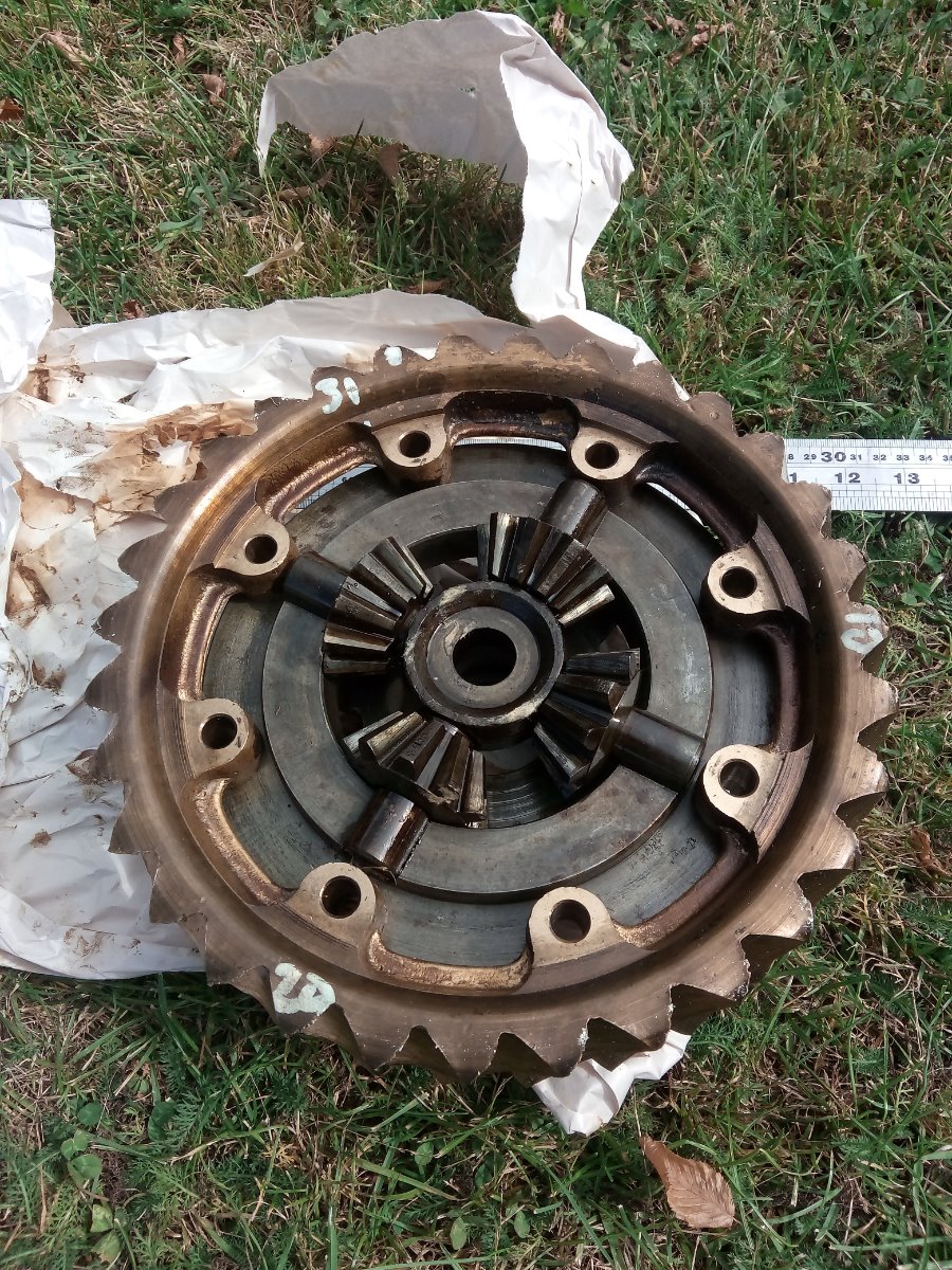 Do you see those gears that are on the ends of the axle shafts? Do you have a cleaned up picture of those gears? I need to see the teeth side straight on, the back side and a side view to get the angle...also if you've got any of the Ruckstell parts cleaned up, those would good to see too, especially the outside gear, just a straight on shot of it, so I can count the teeth. :)
