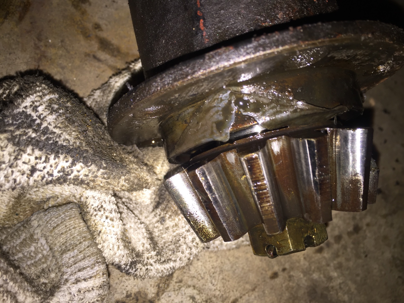 Everything went smoothly removing it and we made a support for the axle and got it mostly apart...most of one tooth MIA on the pinion gear and the ring gear is damaged too.