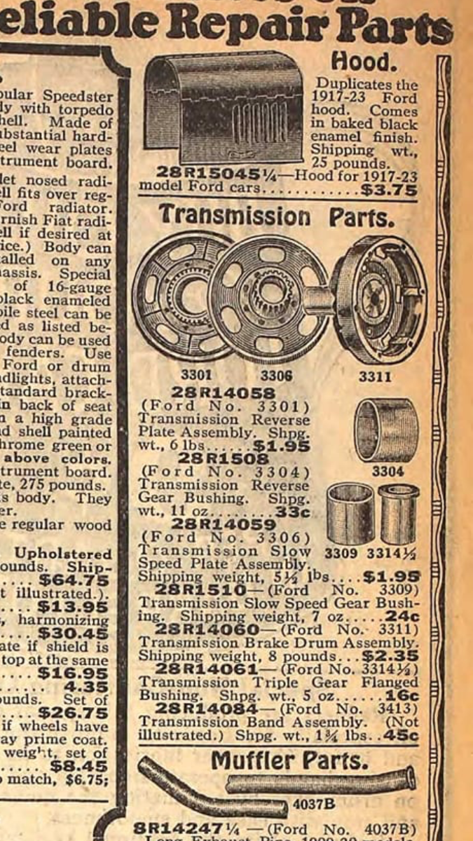 I doubt those parts were genuine Ford. Ford, which cranked out reverse drums by the bazillion, had to get a whopping $3.00 for theirs. Likely these parts were part of the many "spurious" ones that Ford waged unrelenting campaigns against. Comparisons of individual "spurious" against genuine Ford parts frequently appeared in the Service Bulletins.