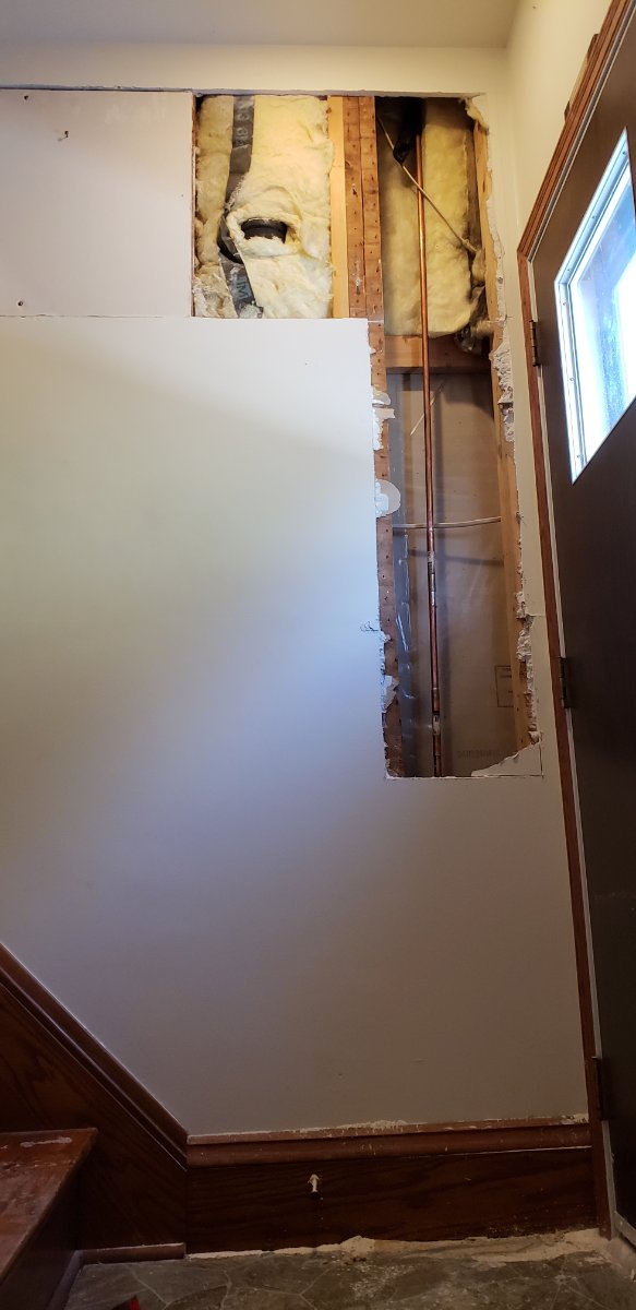 Kid gave me his nasty cold/flu yesterday. He has been sick as a dog for 5 days, at one point he had 103 temp. I barely slept last night due to the hacking. Get up this morning and no hot water in the upstairs bathroom. The pipe froze and ruptured in two places. Had to tear in to the wall to fix it. Did not have the right parts, so 2 parts runs. And don't forget a 2 hour nap mid repair. I'm ready for another nap!