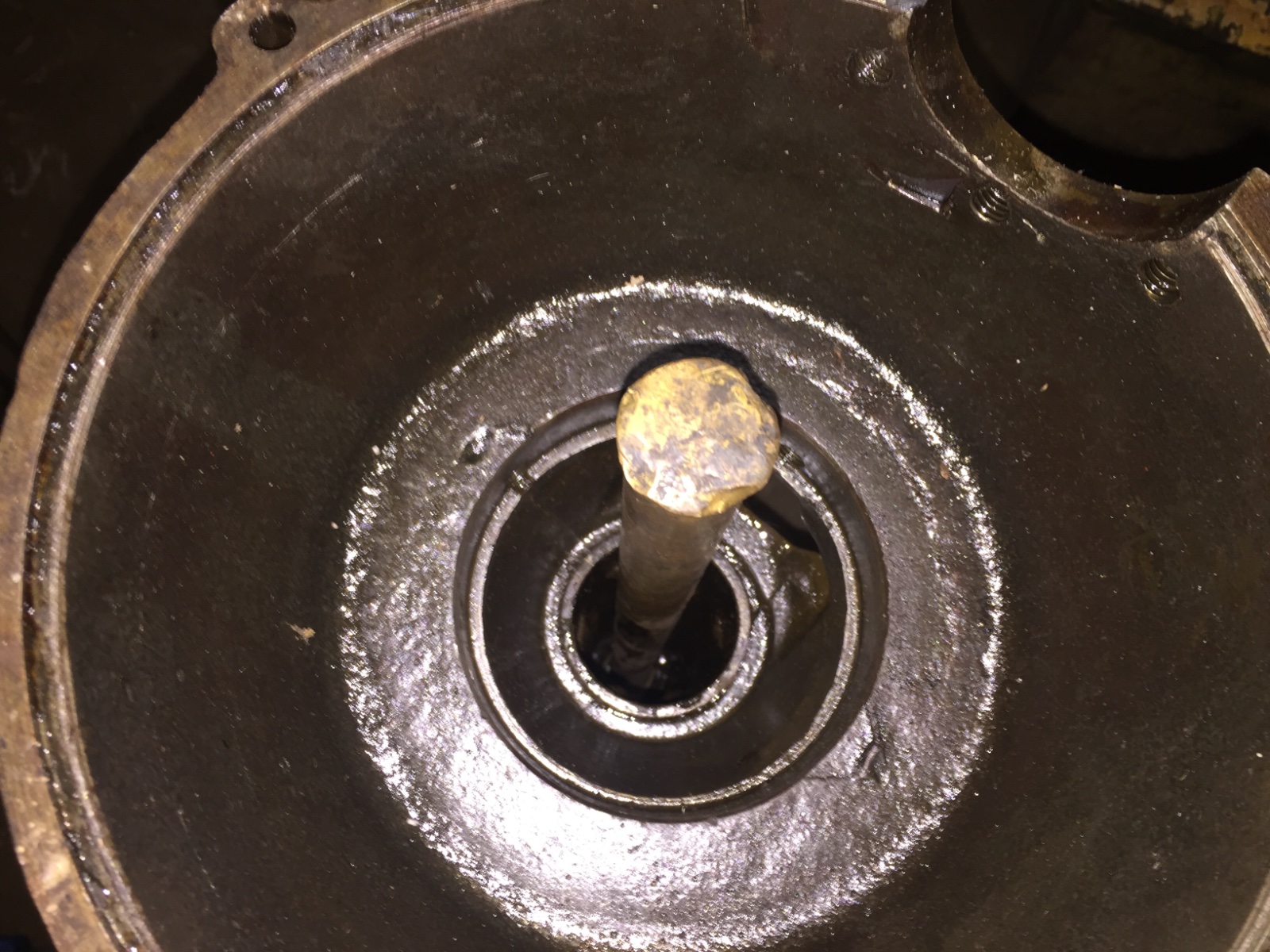 I want to get it apart and see what’s in there now. There’s a remnant of a modern seal rubber on the shaft and the rest looks like it is behind the dummy shaft. Once I get it out, I hope I can match this stuff up at Akron Bearing supply.